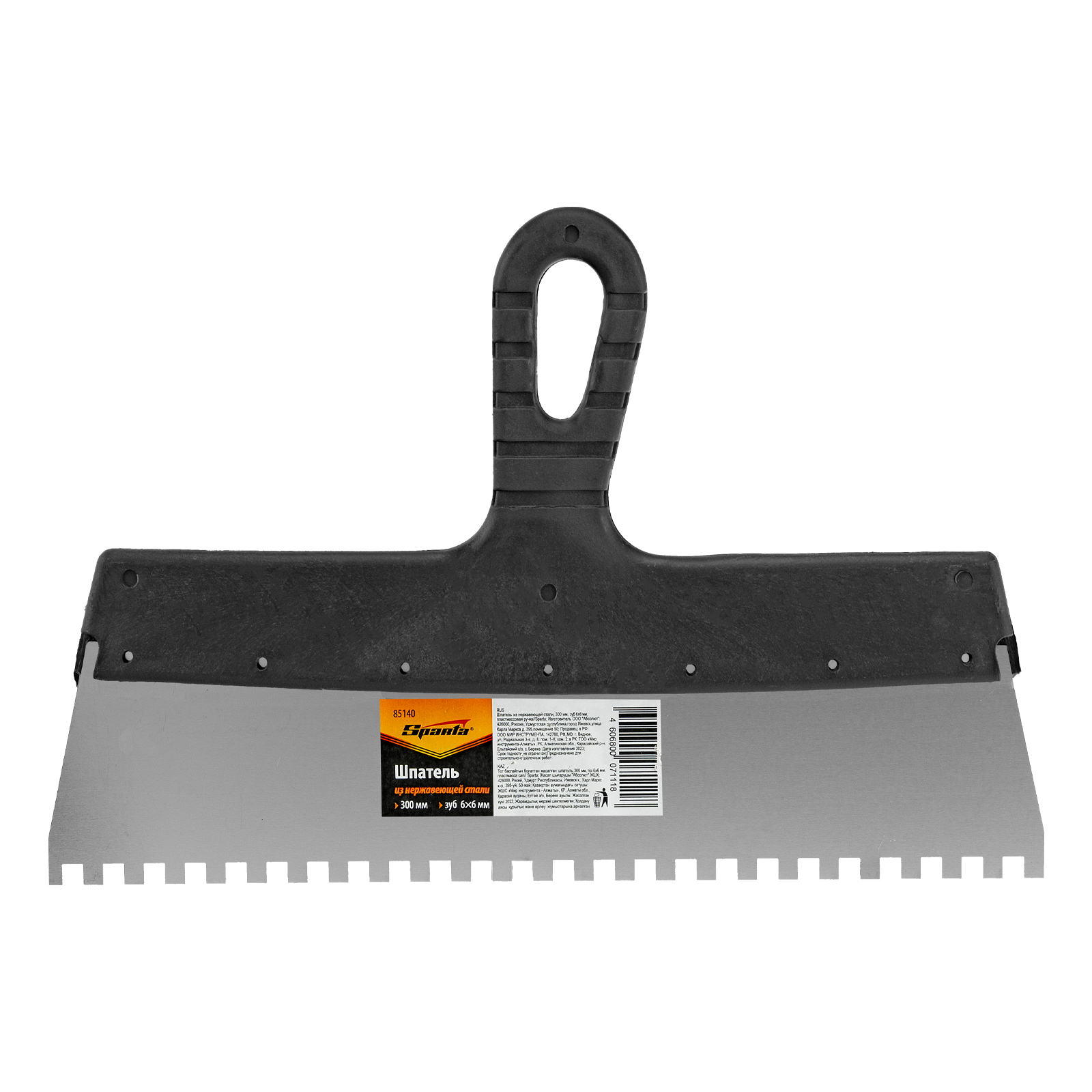 Шпатель из нержавеющей стали, 300 мм, зуб 6 х 6 мм, пластмассовая ручка Sparta