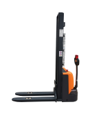 Данный штабелер легко управляется с помощью многофункциональной ручки управления. Отличительной чертой данной модели являются его размеры. Его корпус значительно тоньше, чем у полностью самоходных моделей. Ручка управления перенесена из центральной части в левую, поэтому оператор может с легкостью управлять им стоя сбоку. Это позволяет применять его в более узких проходах, где работа самоходного штабелера невозможна.
