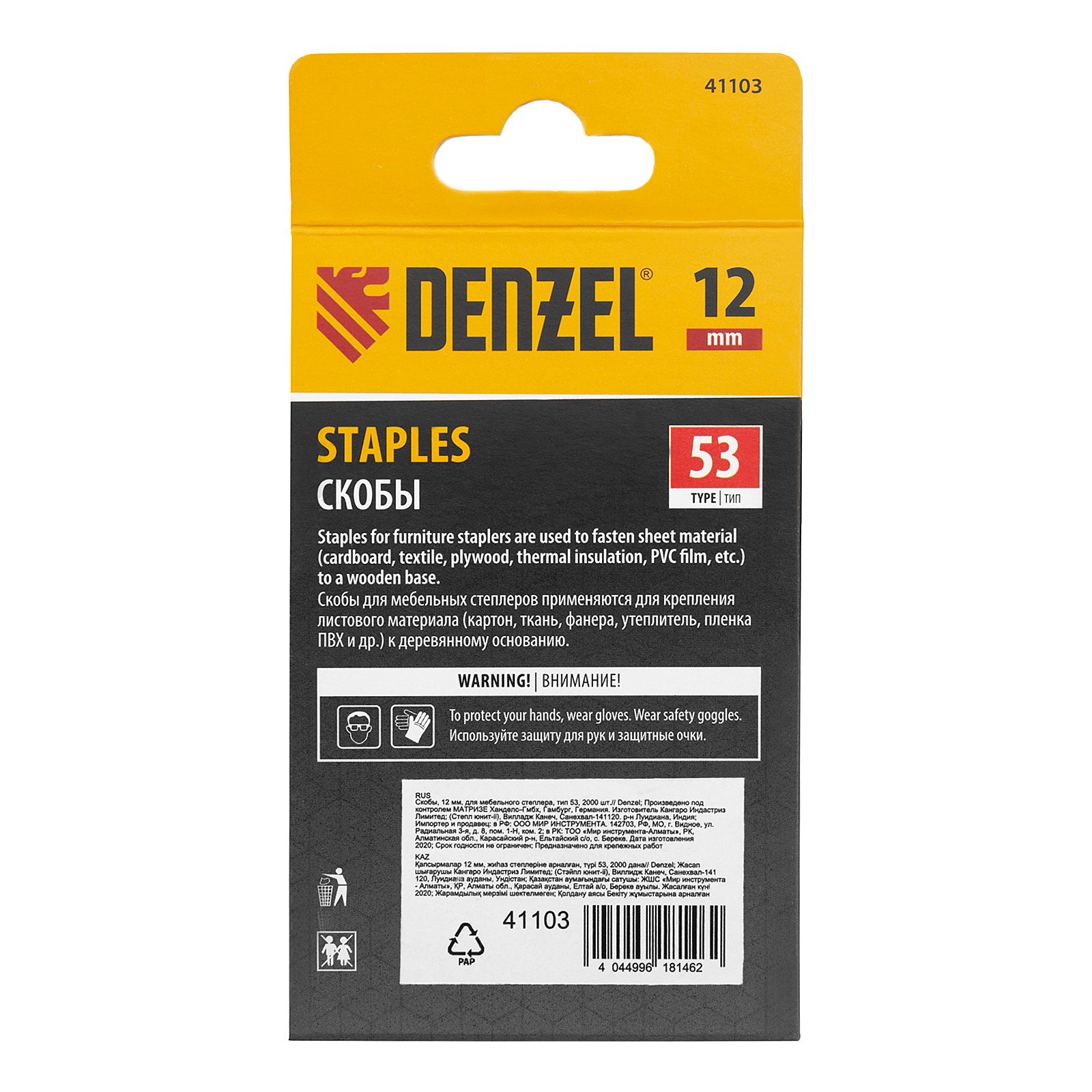 Скобы, 12 мм, для мебельного степлера, тип 53, 2000 шт. Denzel