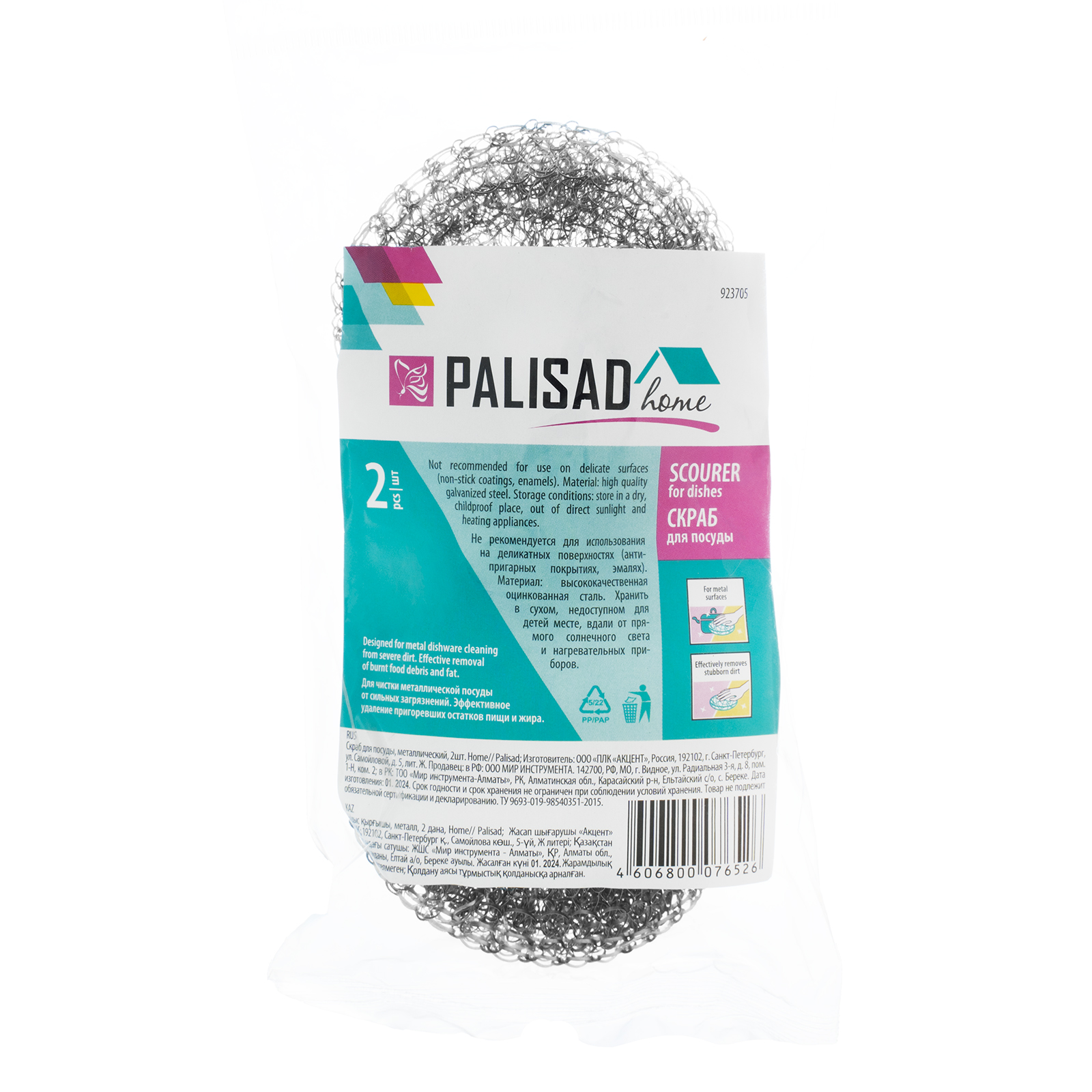 Скраб для посуды, металлический, 2 шт., Home Palisad