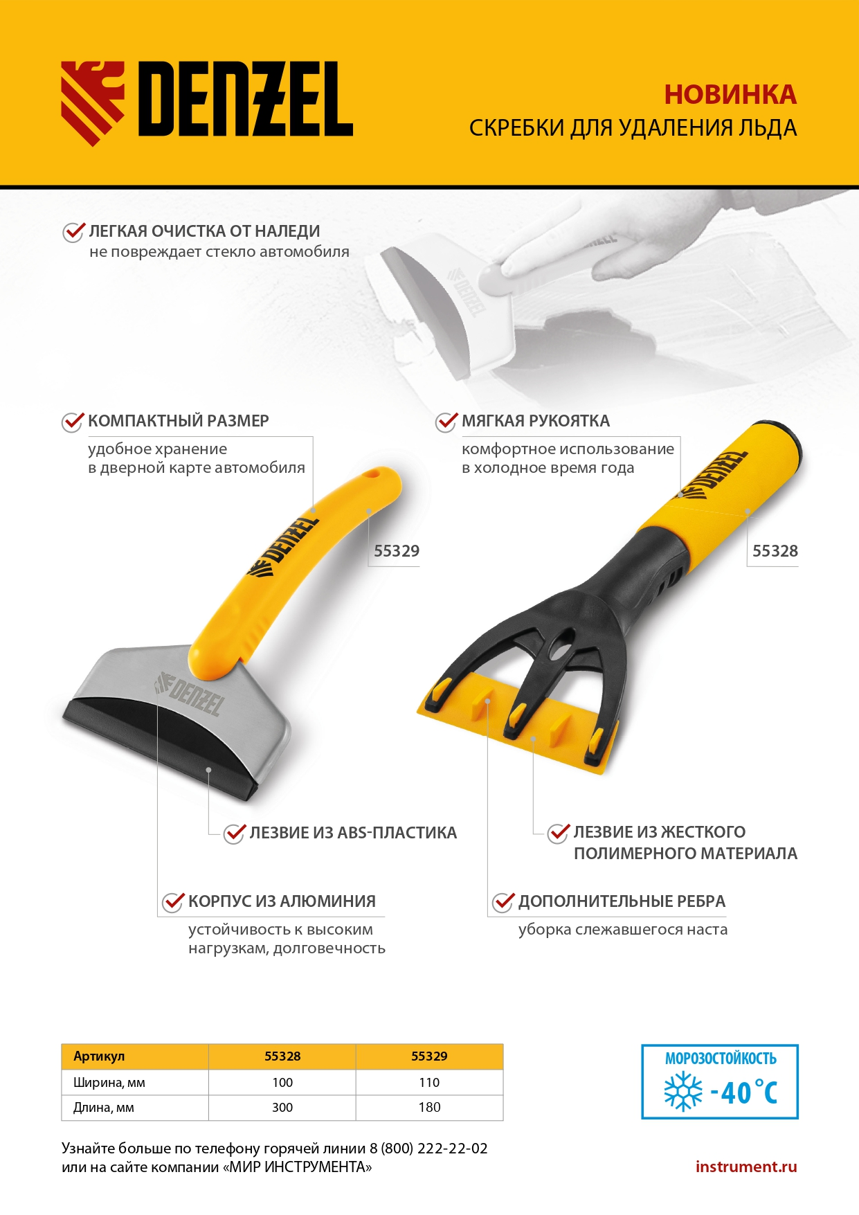 Скребок Denzel 55328 с мягкой рукояткой предназначен для удаления наледи со стекол и зеркал автомобиля. Благодаря компактным размерам 30 х 10 см он легко помещается в салоне автомобиля и всегда доступен.
