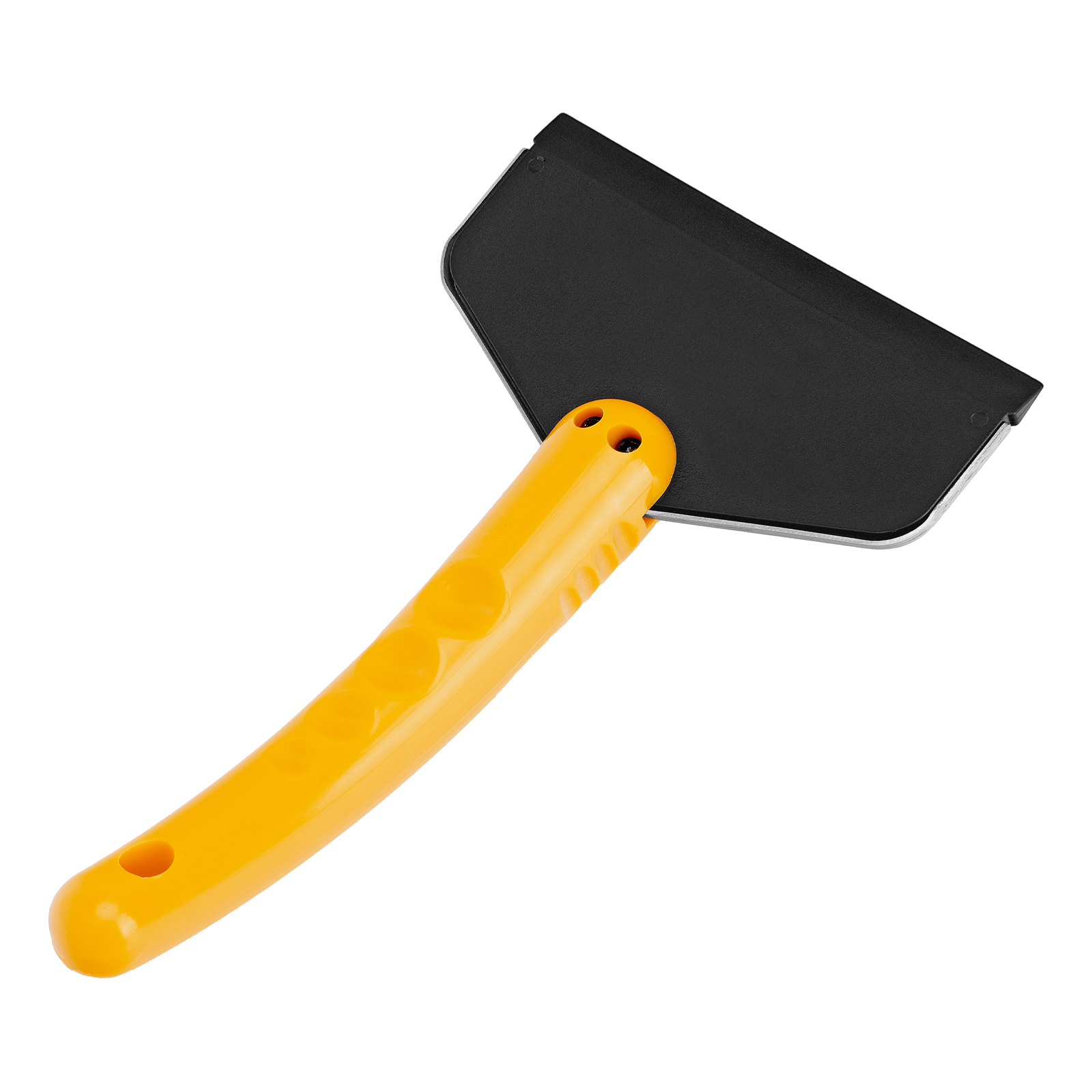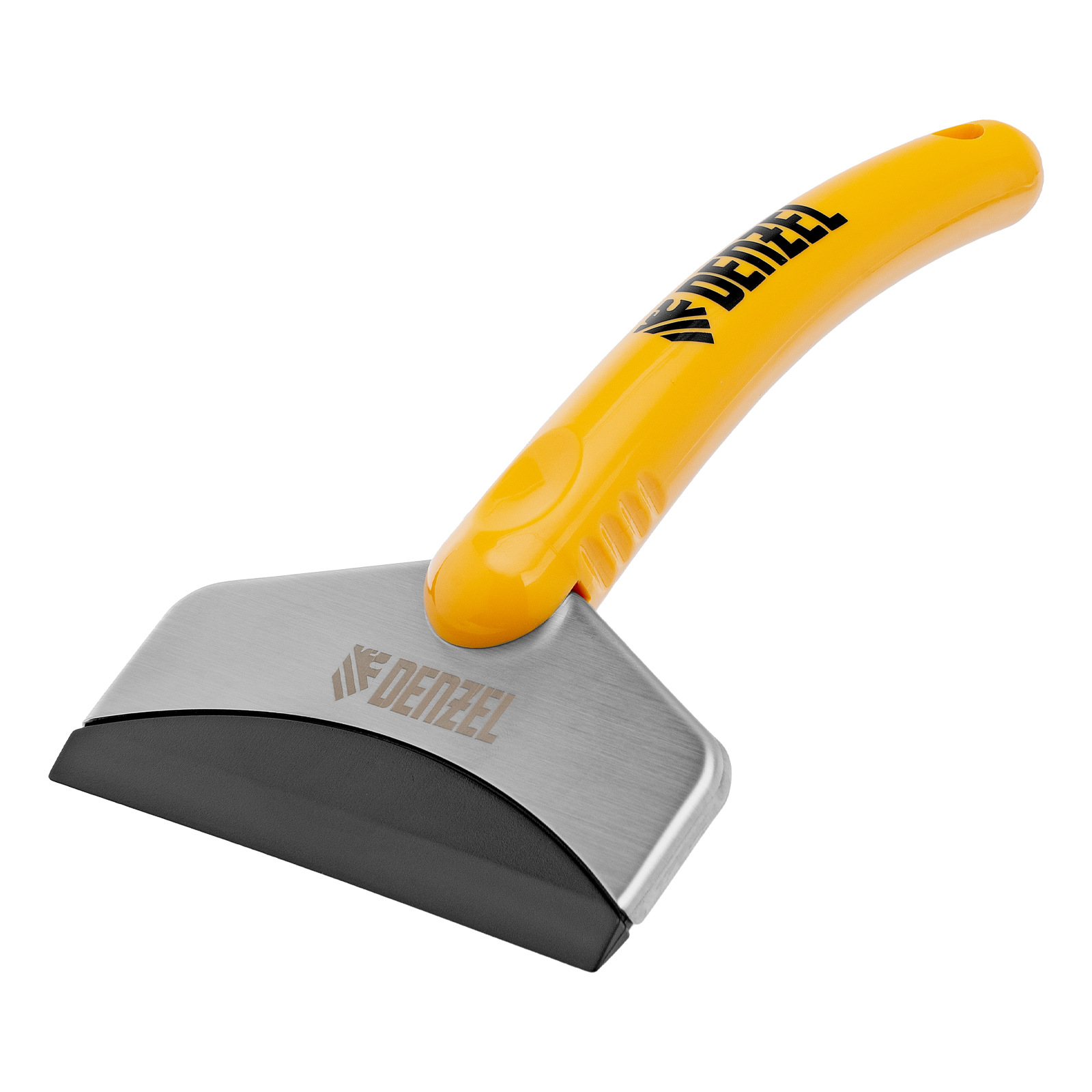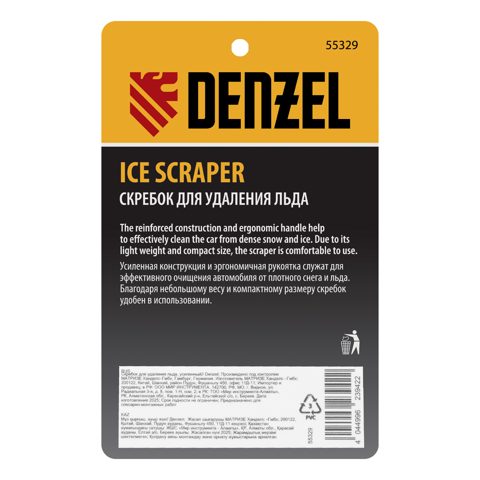 Усиленный скребок для удаления льда Denzel 55329 применяется для очищения зеркал и стекол автомобиля от налипшего и примерзшего снега. За счет небольшого размера 18 х 11 см скребок удобно хранить в салоне автомобиля.
