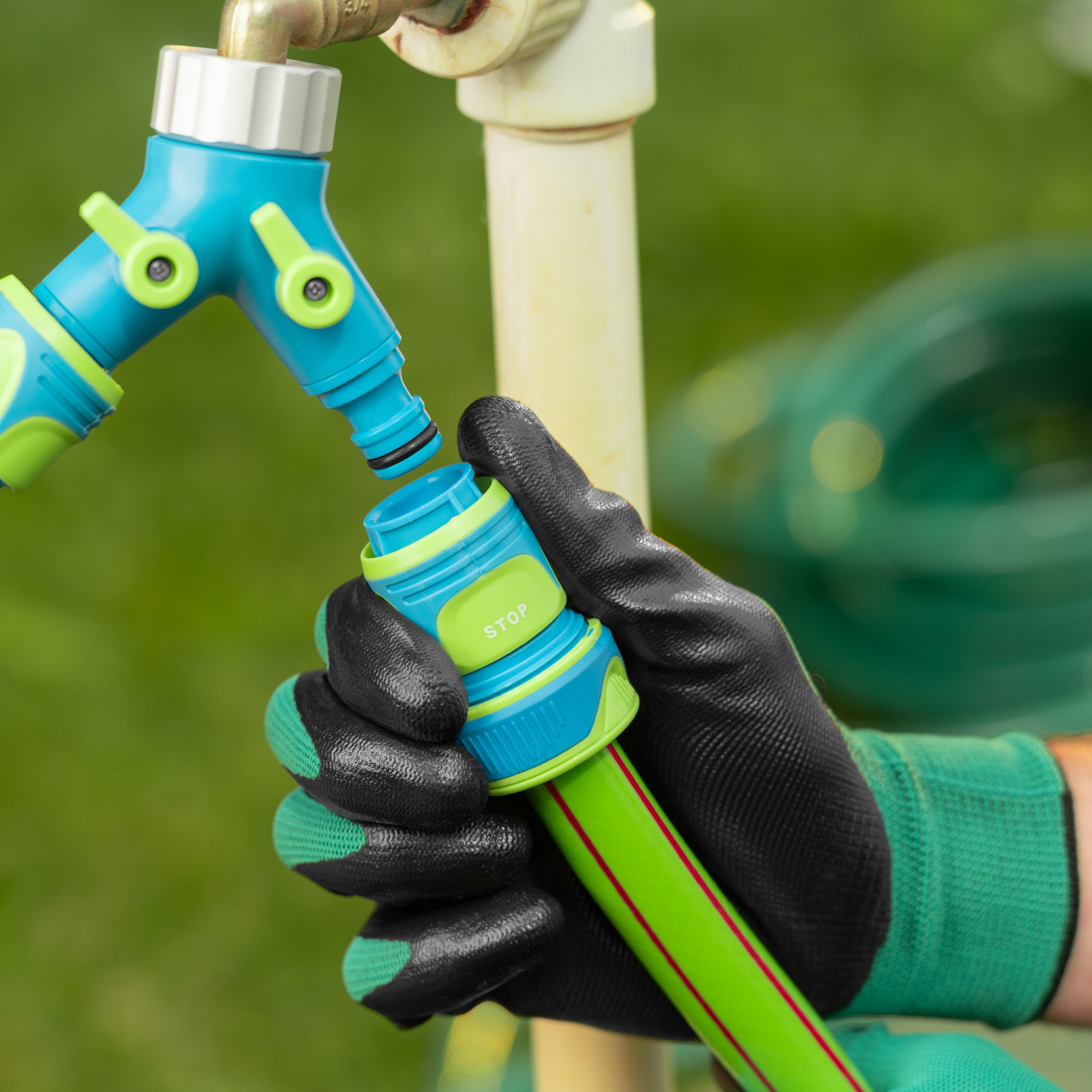 Быстросъемный соединитель Palisad LUXE 65776 с двухкомпонентным корпусом, с клапаном «аквастоп» и внутренней резьбой 3/4", применяется для присоединения шланга к напорной магистрали. Позволяет организовать бесперебойную подачу воды для полива садового или огородного участка.