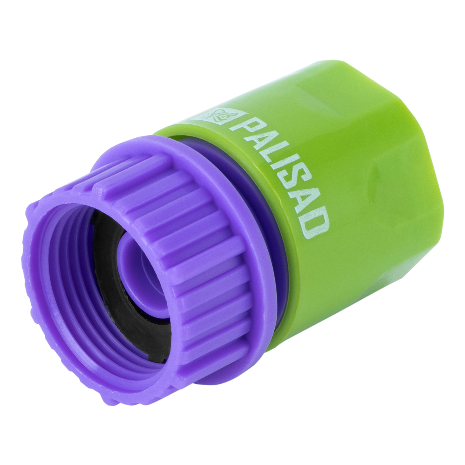 Пластмассовый быстросъемный соединитель Palisad с внутренней резьбой 3/4" используется для подключения шланга через переходник к крану или отводу, имеющему выход с внешней резьбой. Позволяет подключить шланг к водораздаточной линии через переходник. Облегчает монтаж поливочной линии на дачном участке.