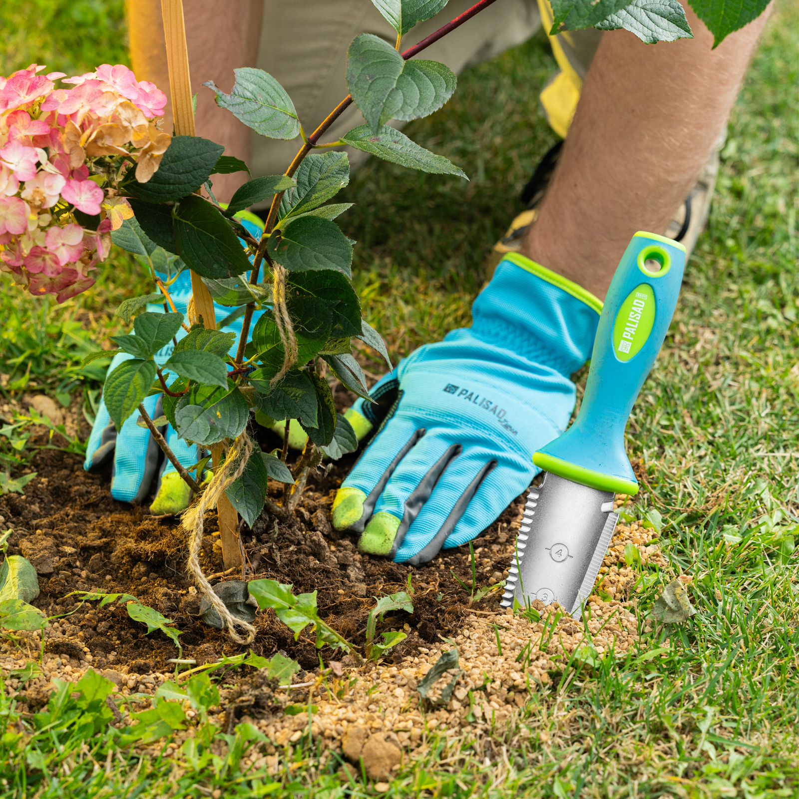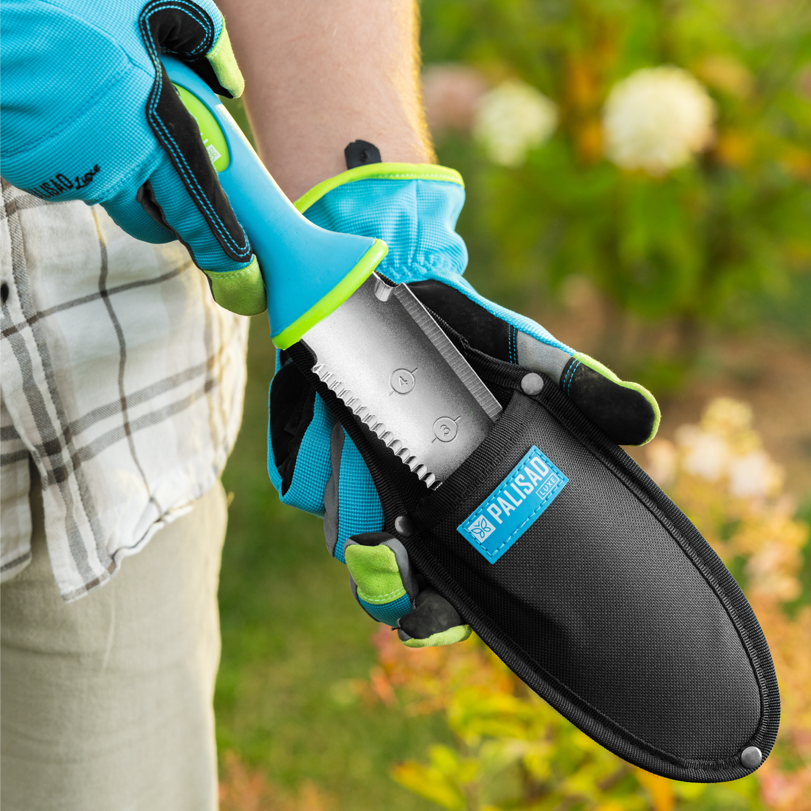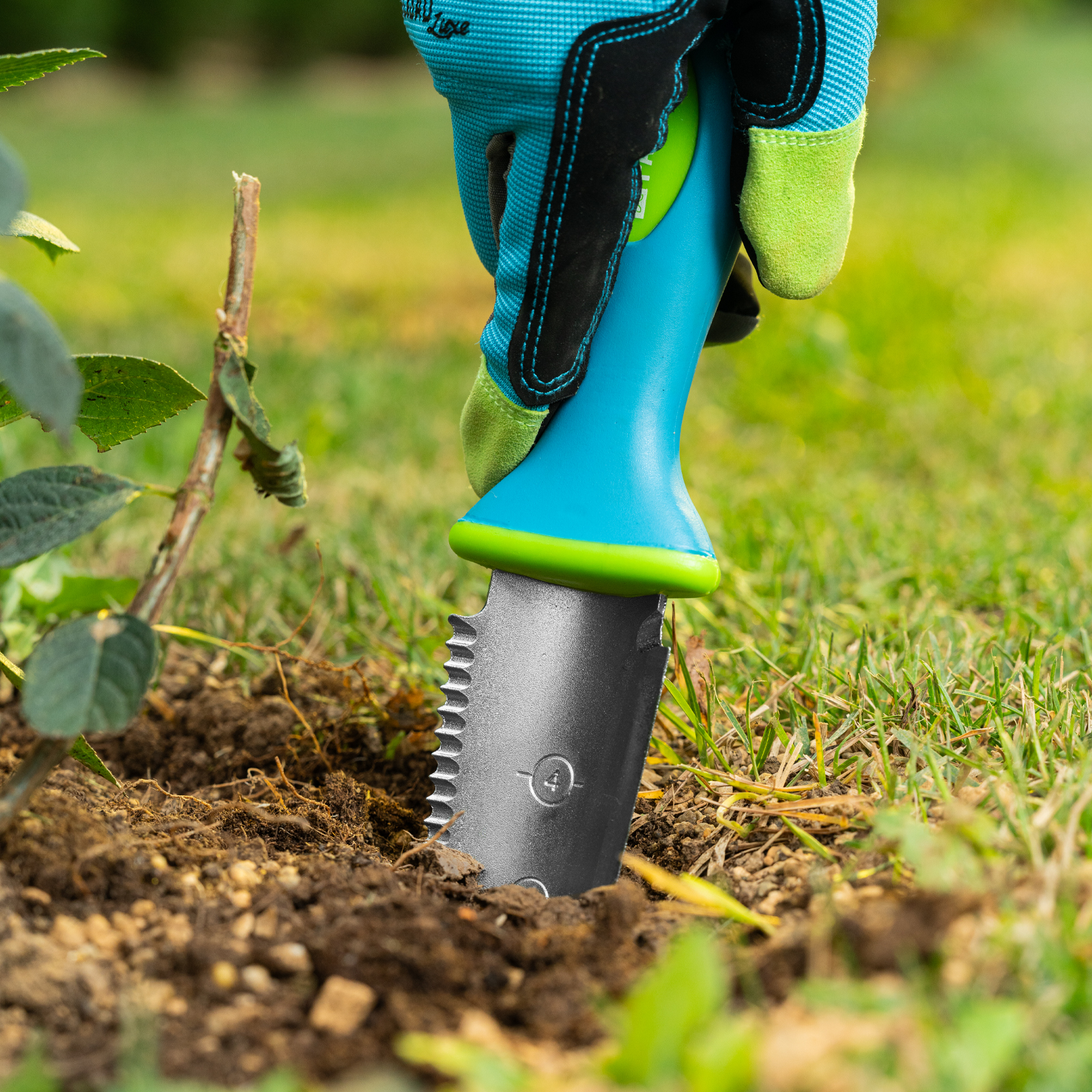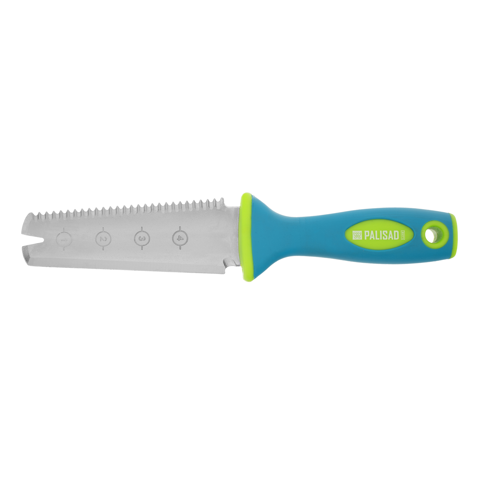 Посадочный совок Palisad LUXE 62070 размером 60 x 285 мм представляет собой многофункциональный инструмент 5 в 1, позволяющий решать различные задачи во время работы в саду и огороде: высаживать и пересаживать растения, обрезать корни, шпагаты и ленты, удалять сорняки. Компактный инструмент с полотном размером 50 x 125 мм удобен для работы на небольших грядках и клумбах.
