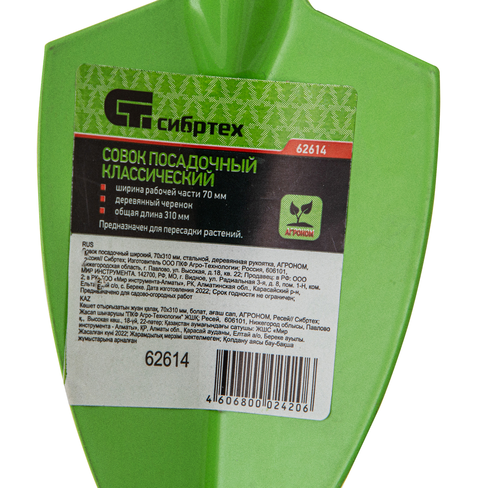 Совок посадочный широкий, 70 х 310 мм, стальной, деревянная рукоятка, Агроном, Сибртех