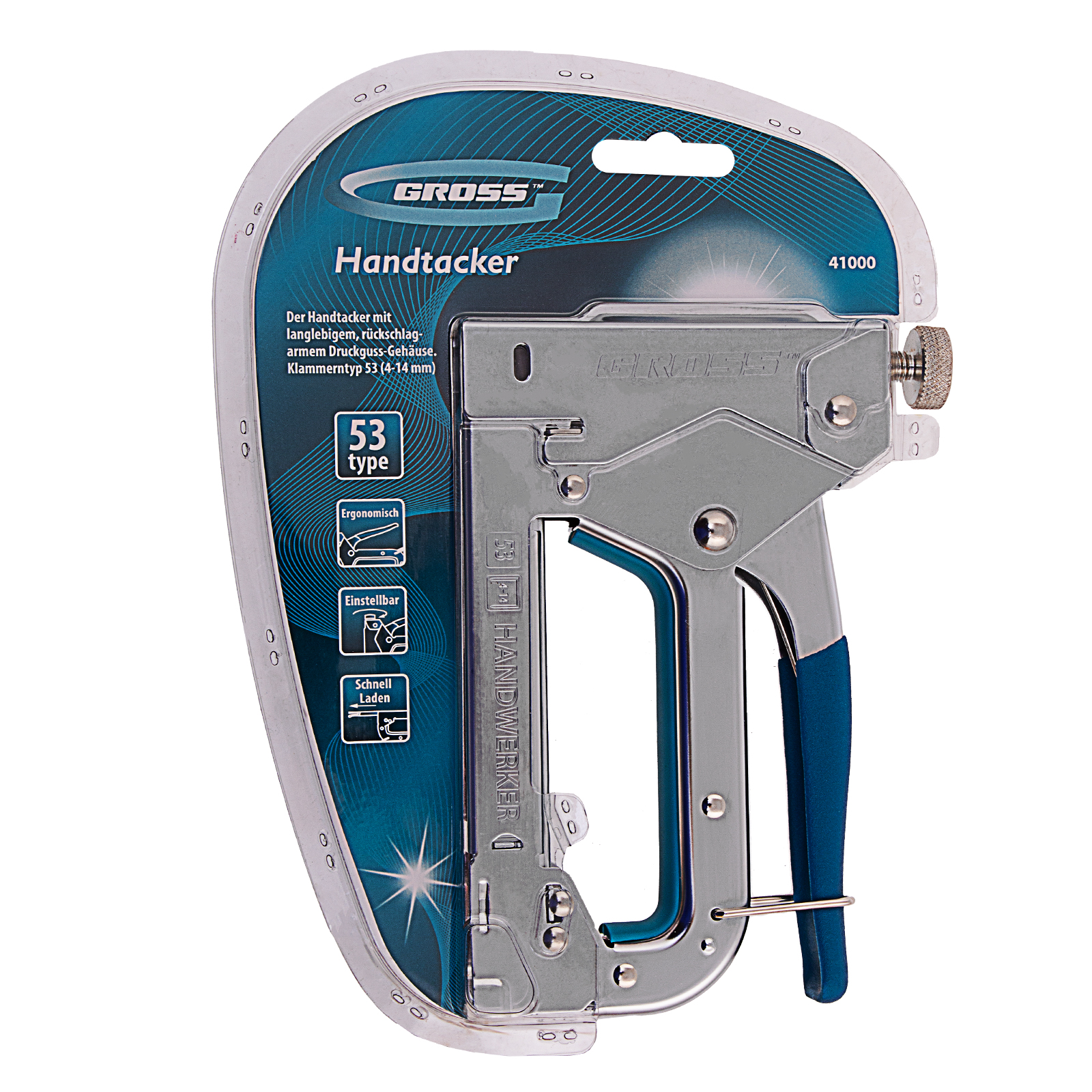Степлер мебельный регулируемый (Handwerker) стальной корпус, тип скобы 53, 4-14 мм Gross
