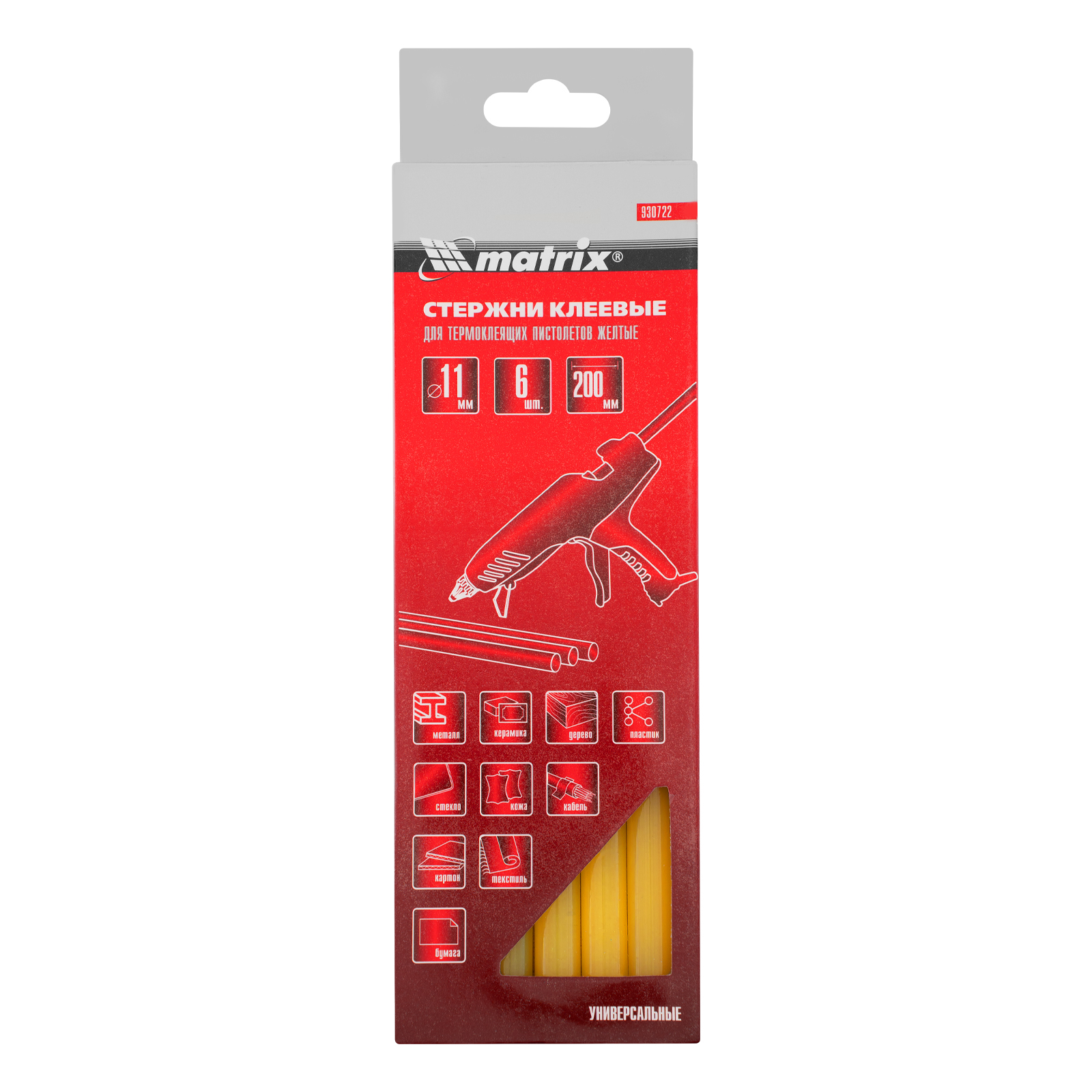Стержни клеевые, желтый, 11 х 200 мм, в упаковке 6 шт Matrix
