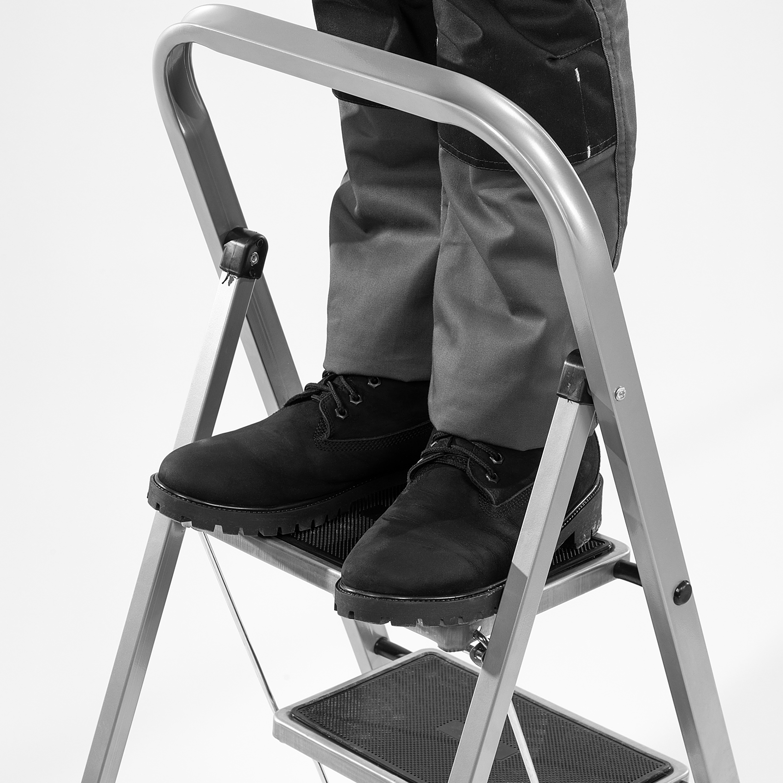 - Надежная фиксация в рабочем положении — верхняя площадка имеет специальные зацепы.