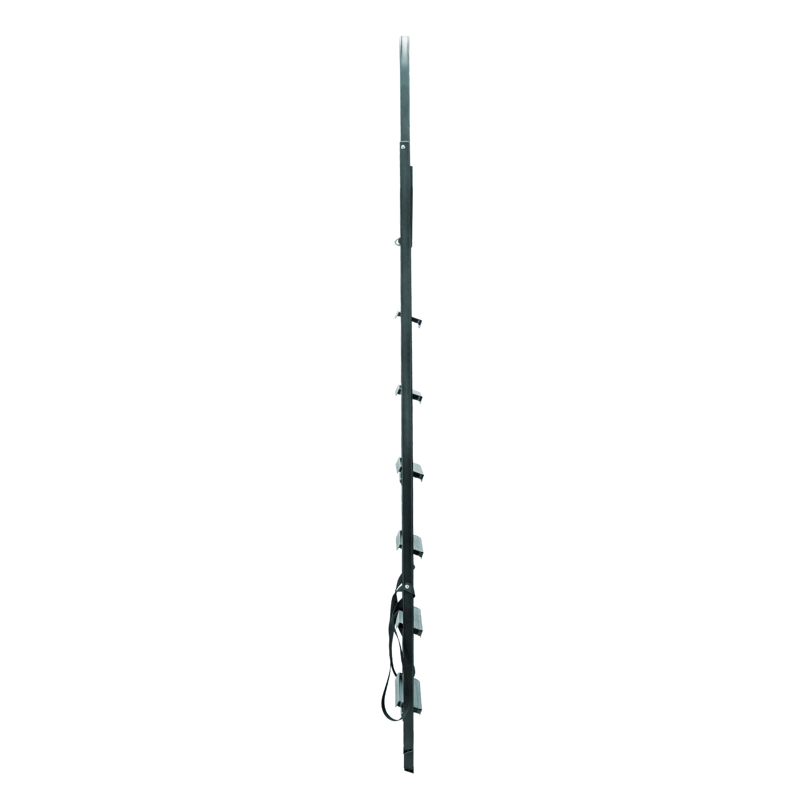 - Надежная фиксация в рабочем положении — на верхней площадке имеются специальные зацепы, опоры дополнительно удерживаются страховочными лентами.