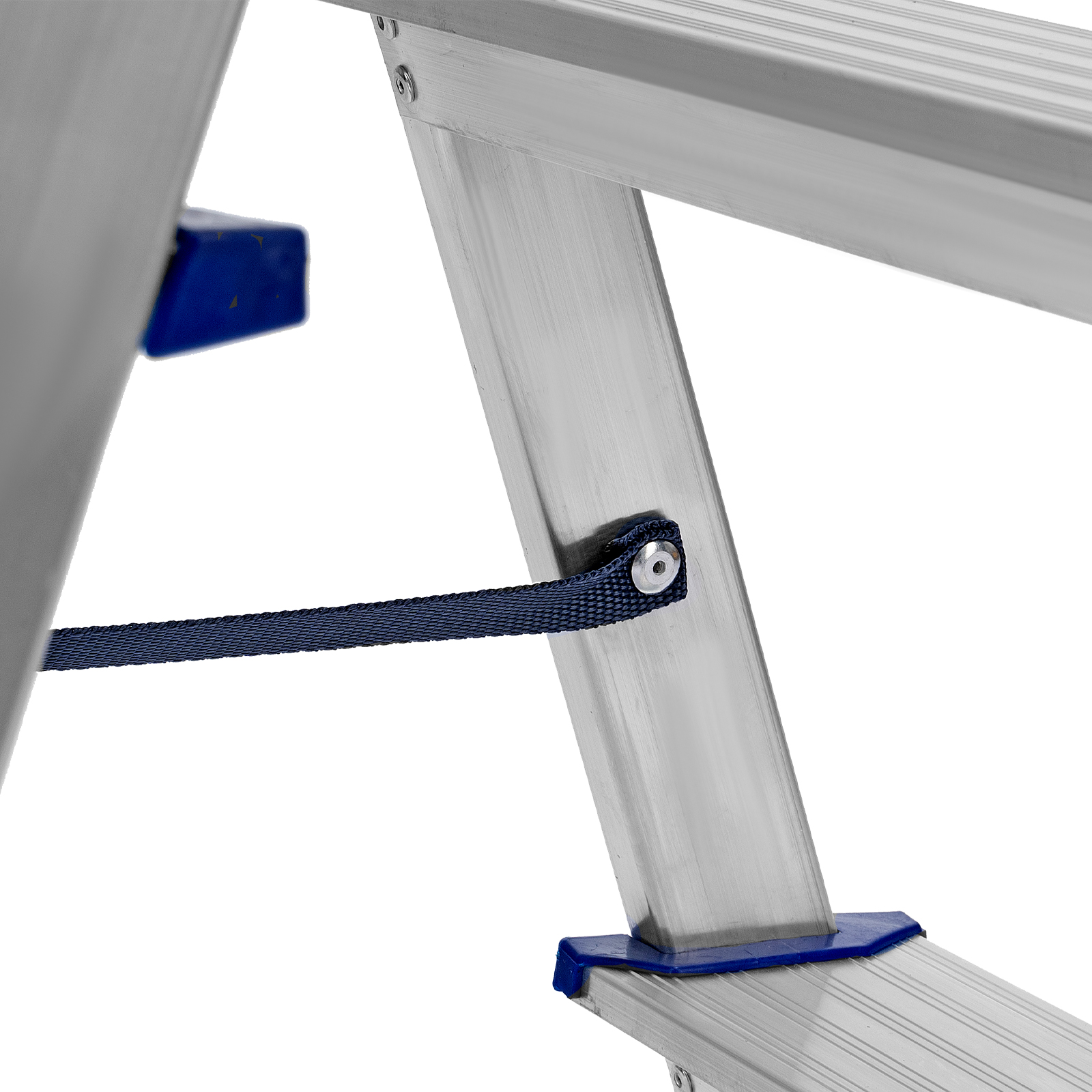 - Продуманная конструкция — нейлоновые страховочные стяжки повышают надежность фиксации стремянки в рабочем положении.