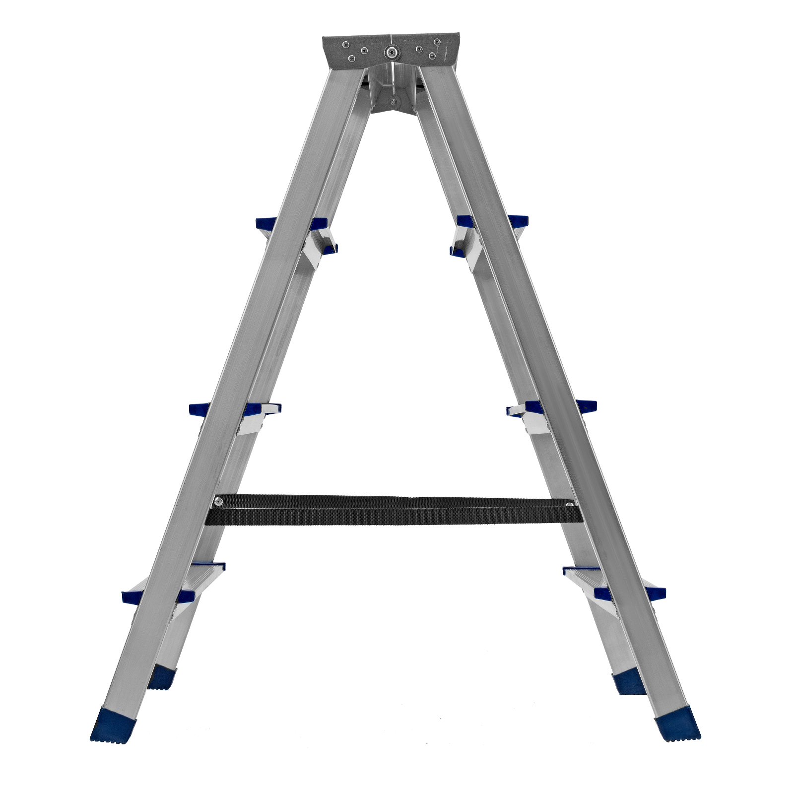 Стремянка двусторонняя алюминиевая Сибртех 97924 с 4 ступенями позволяет выполнять различные действия на высоте — штукатурить или красить стены, менять лампочки, вытирать пыль, доставать нужные предметы с верхних полок. Площадка находится на высоте 82,8 см от опорной поверхности, рабочая высота стремянки составляет 282,8 см (при среднем росте пользователя 170 см).