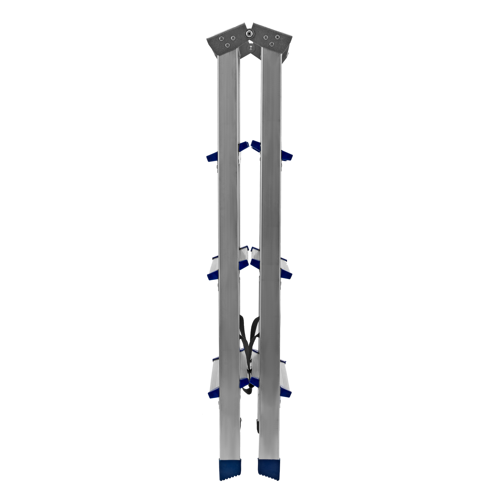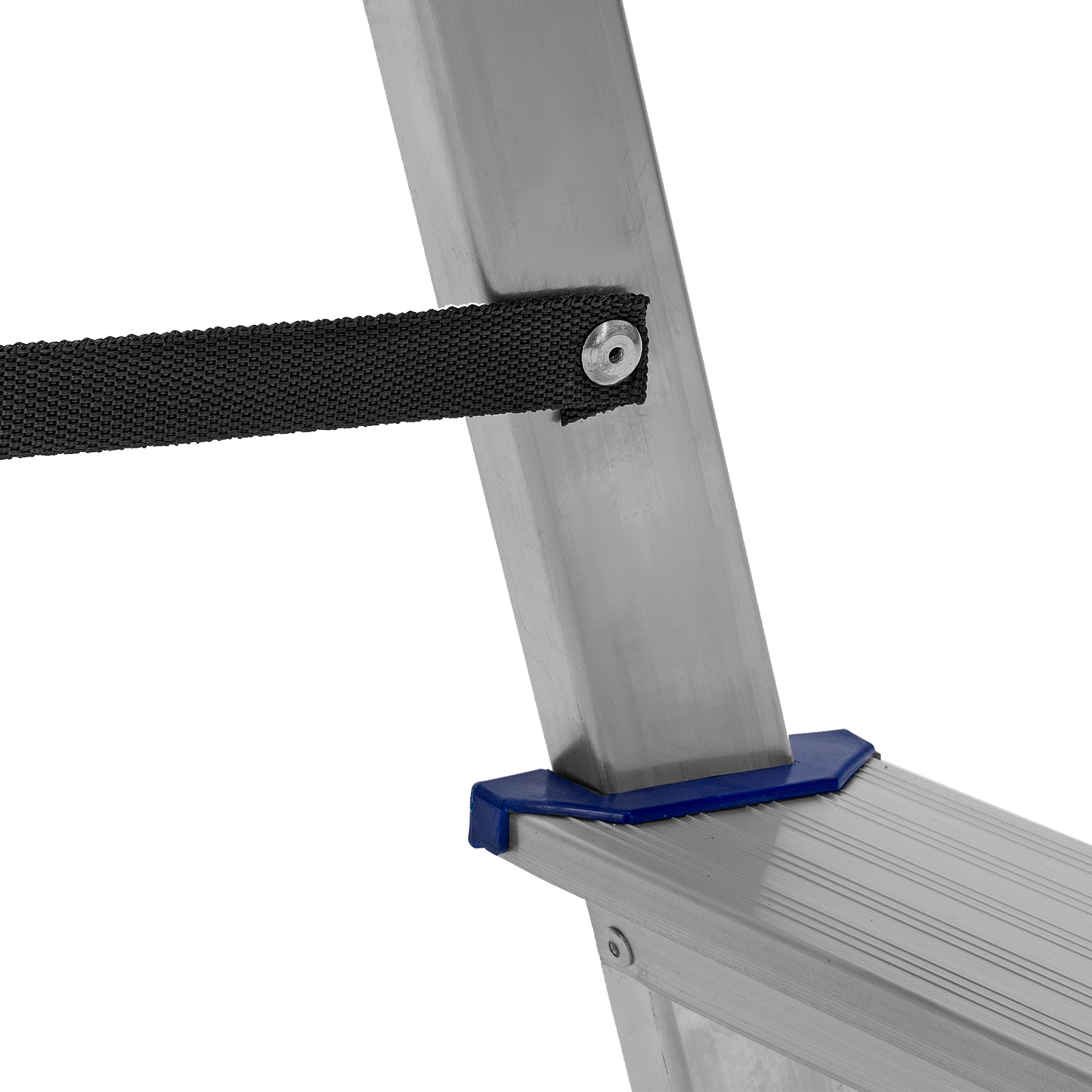 - Продуманная конструкция — нейлоновые страховочные стяжки повышают надежность фиксации стремянки в рабочем положении.