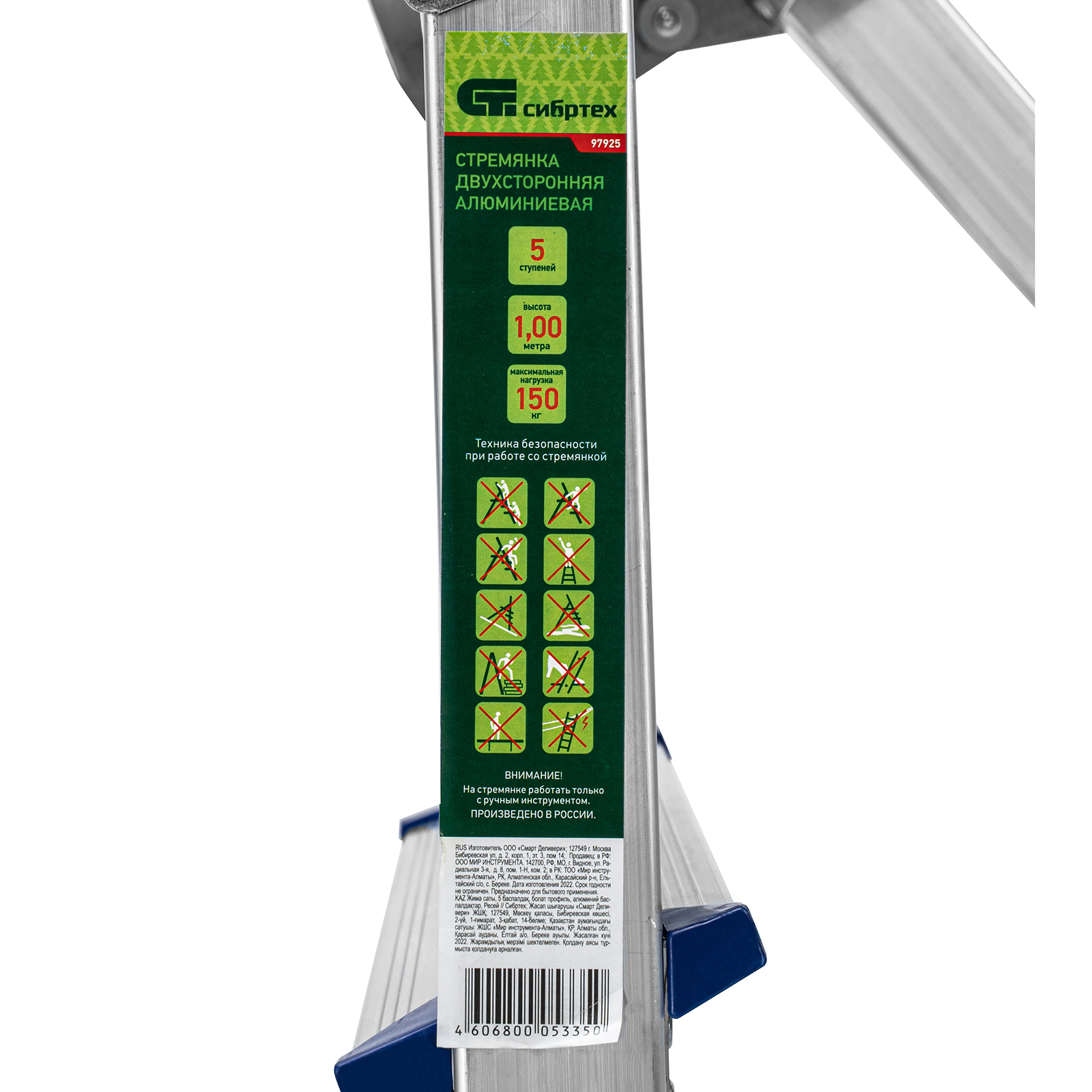 Стремянка двусторонняя 5 ступеней, алюминиевая, Сибртех