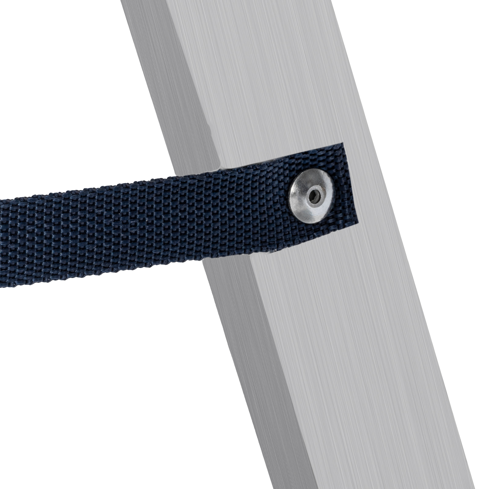 - Продуманная конструкция — нейлоновые страховочные стяжки повышают надежность фиксации стремянки в рабочем положении.