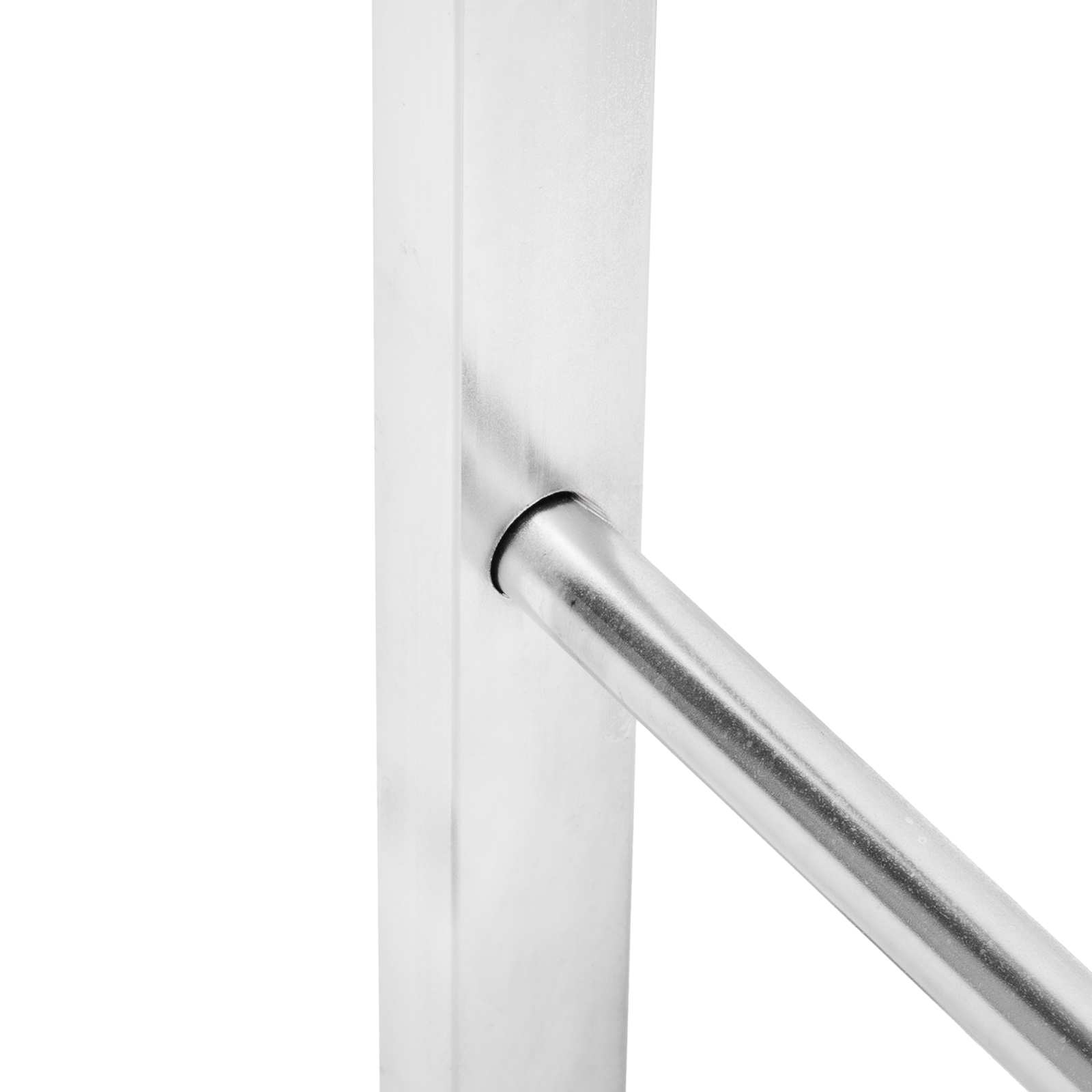 - Компактность и малый вес — лестница весит 3,46 кг, размеры в сложенном состоянии составляют 1035 х 385 х 105 мм, что удобно для хранения и транспортировки.