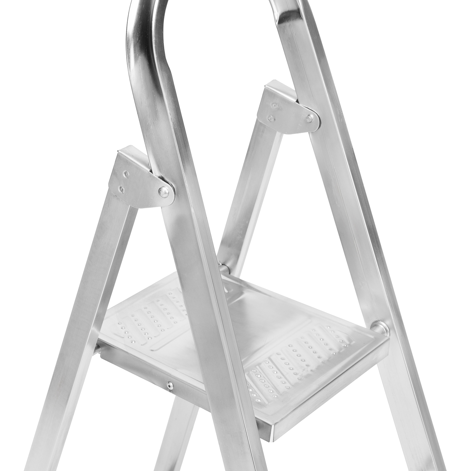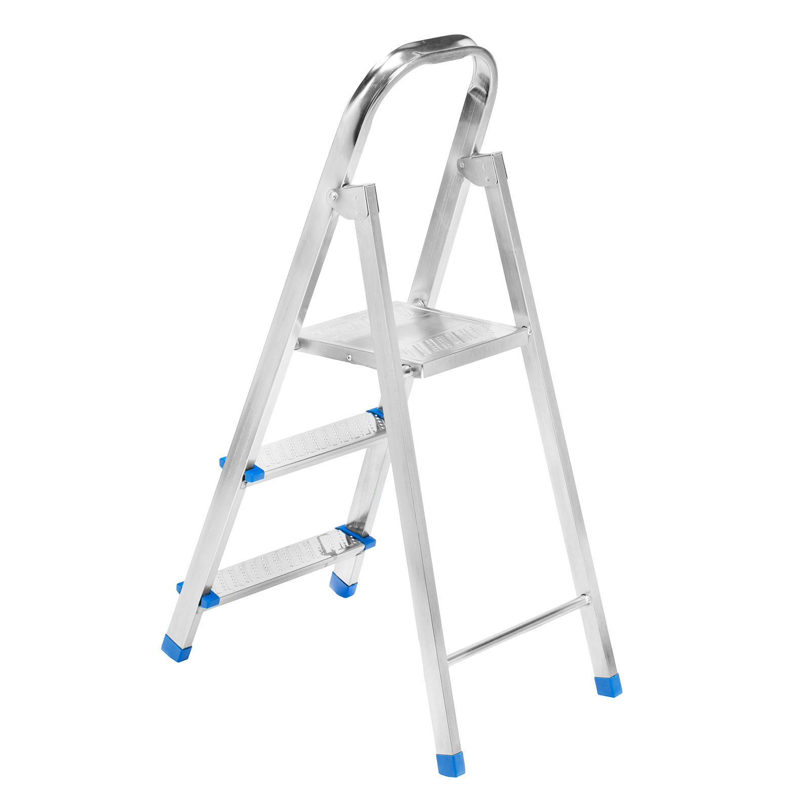 Стальная оцинкованная стремянка Сибртех 97835 с 3 ступенями позволяет повесить полку, картину или шкафчик, достать нужный предмет и решить другие задачи, для которых требуется доступ к предметам на высоте. Рама и ступени из стального профиля выдерживают вес до 120 кг. Расстояние от опорной поверхности до площадки составляет 54 см, при среднем росте пользователя 170 см рабочая высота лестницы — 254 см. Необходимо соблюдать технику безопасности: размещать стремянку только на ровной плоскости и не использовать ее для работы с дрелью, шуруповертом и другим электроинструментом.