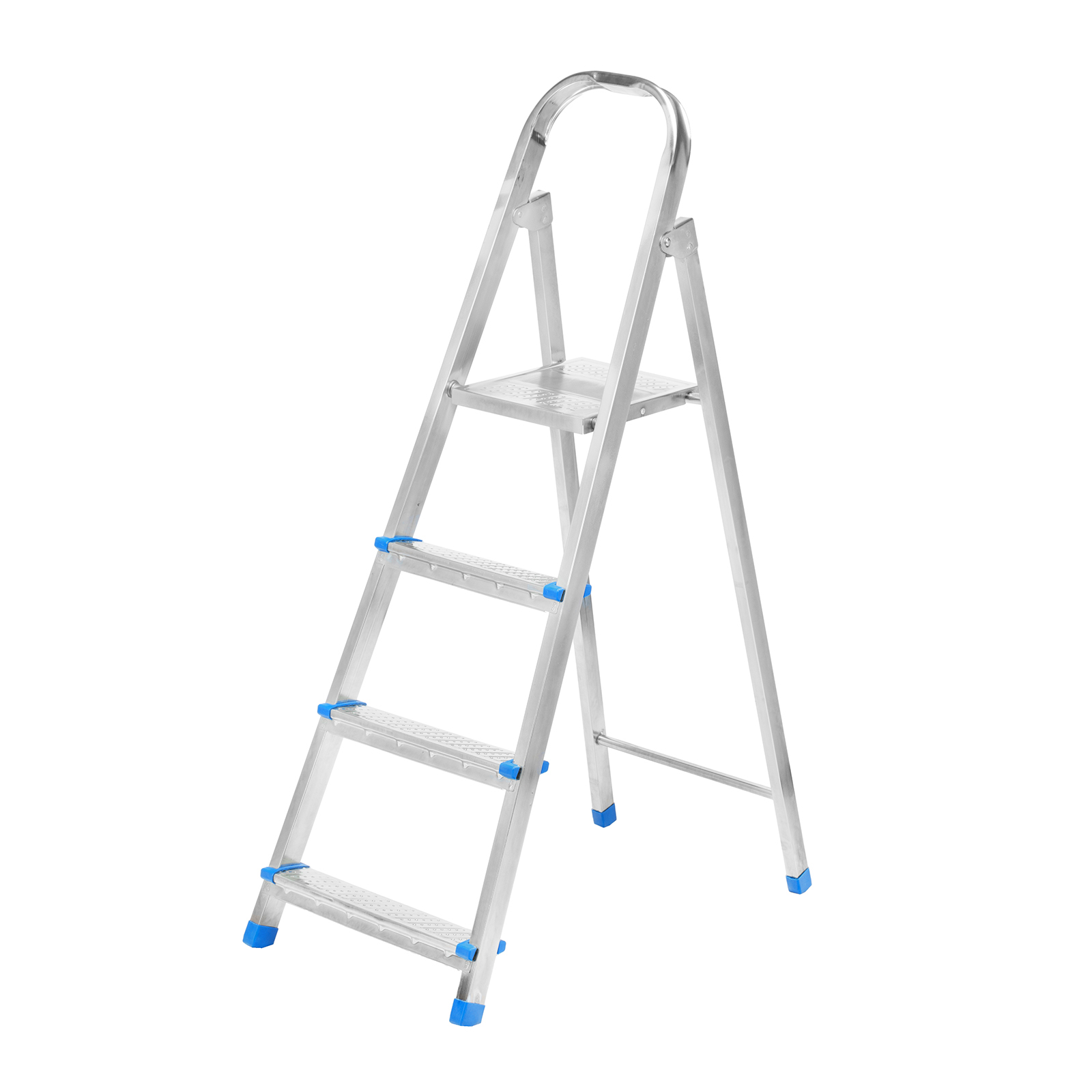 Стальная оцинкованная стремянка Сибртех 97836 с 4 ступенями позволяет повесить полку, картину или шкафчик, достать нужный предмет и решить другие задачи, для которых требуется доступ к предметам на высоте. Рама и ступени из стального профиля выдерживают вес до 120 кг. Расстояние от опорной поверхности до площадки составляет 76,5 см, при среднем росте пользователя 170 см рабочая высота лестницы — 276,5 см. Необходимо соблюдать технику безопасности: размещать стремянку только на ровной плоскости и не использовать ее для работы с дрелью, шуруповертом и другим электроинструментом.