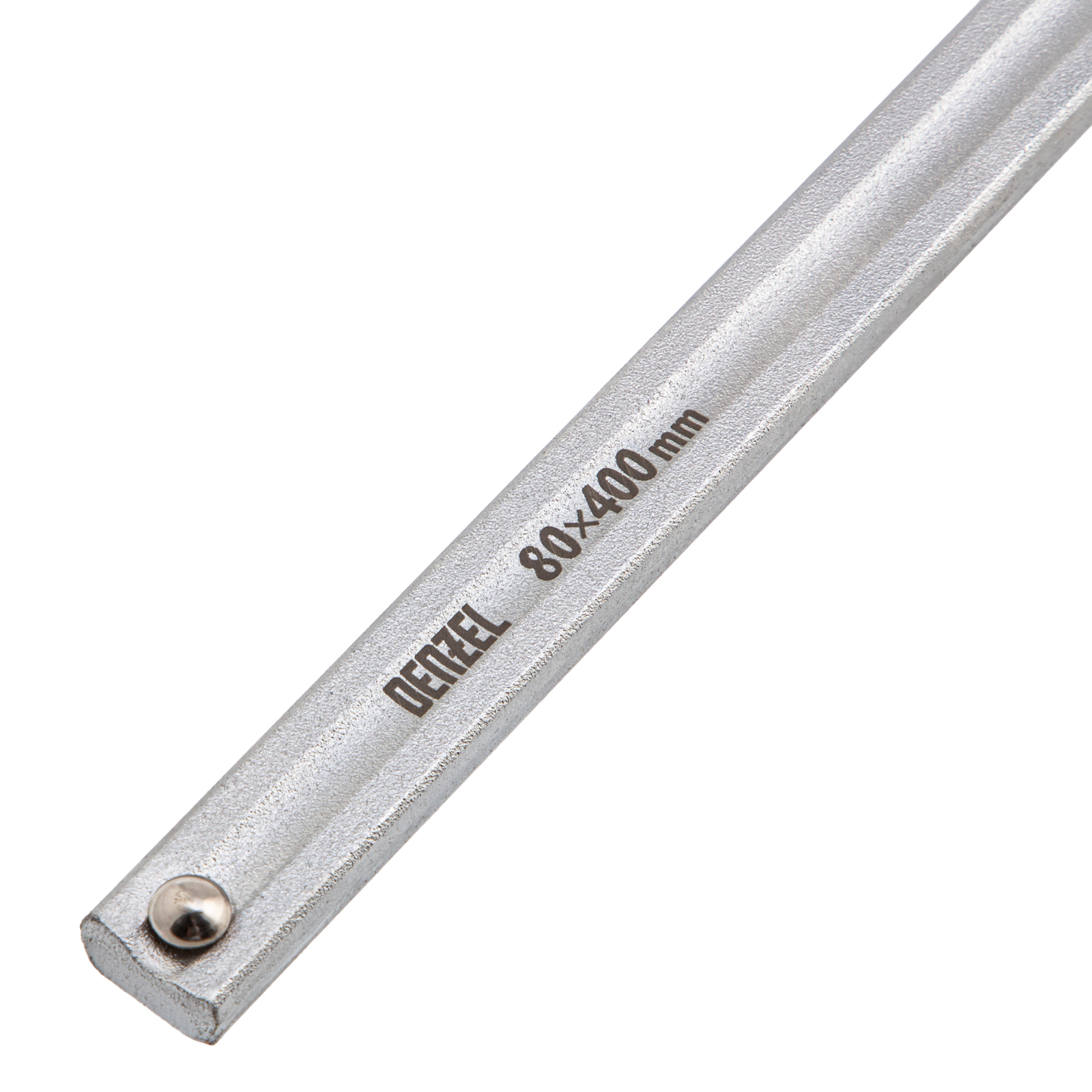 Кованая F-образная струбцина Denzel 20467 с глубиной зажима 80 мм, усиленная, предназначена для фиксации деталей шириной до 400 мм и материалов при проведении слесарных, столярных и сварочных работ. Тавровый профиль обеспечивает устойчивость конструкции к изгибу, что позволяет фиксировать детали со значительным усилием. Струбцина подходит для профессионального применения.