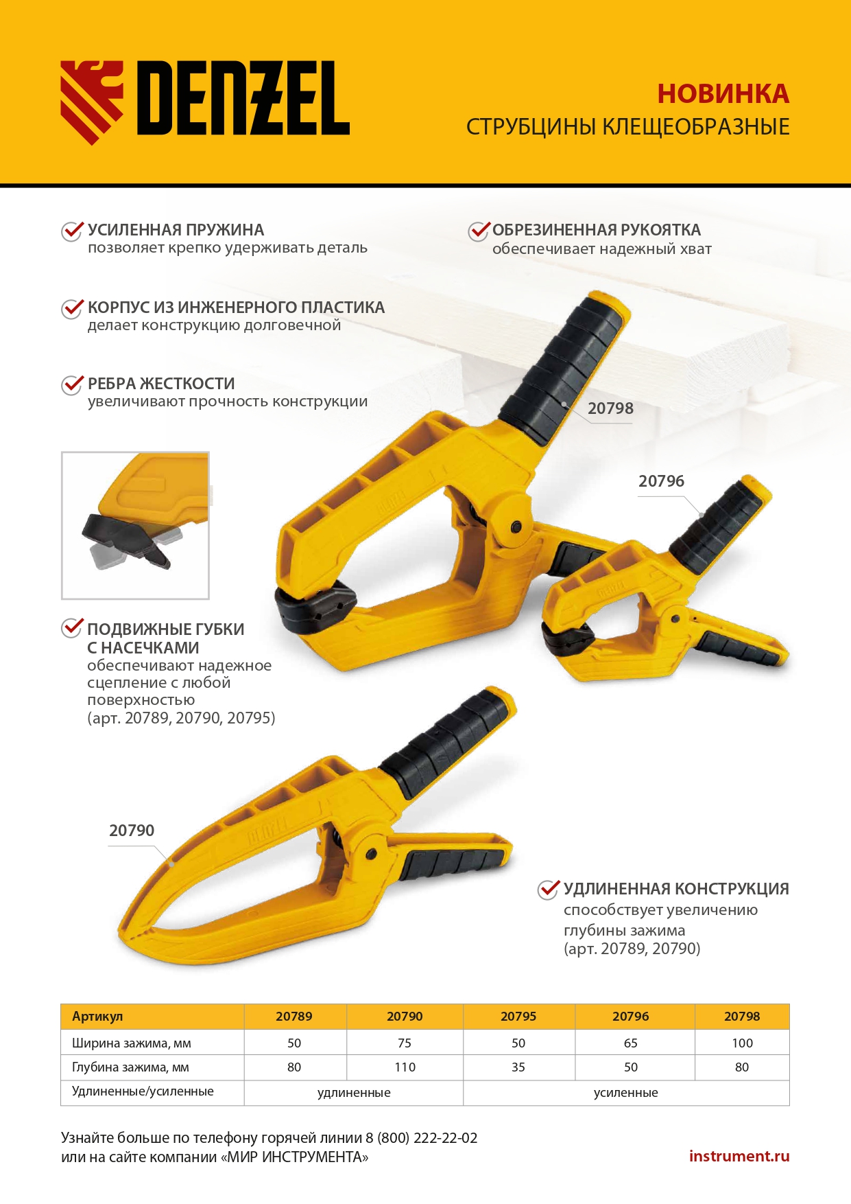 Струбцина клещеобразная, удлиненная 50 х 80 мм двухкомпонентные рукоятки Denzel