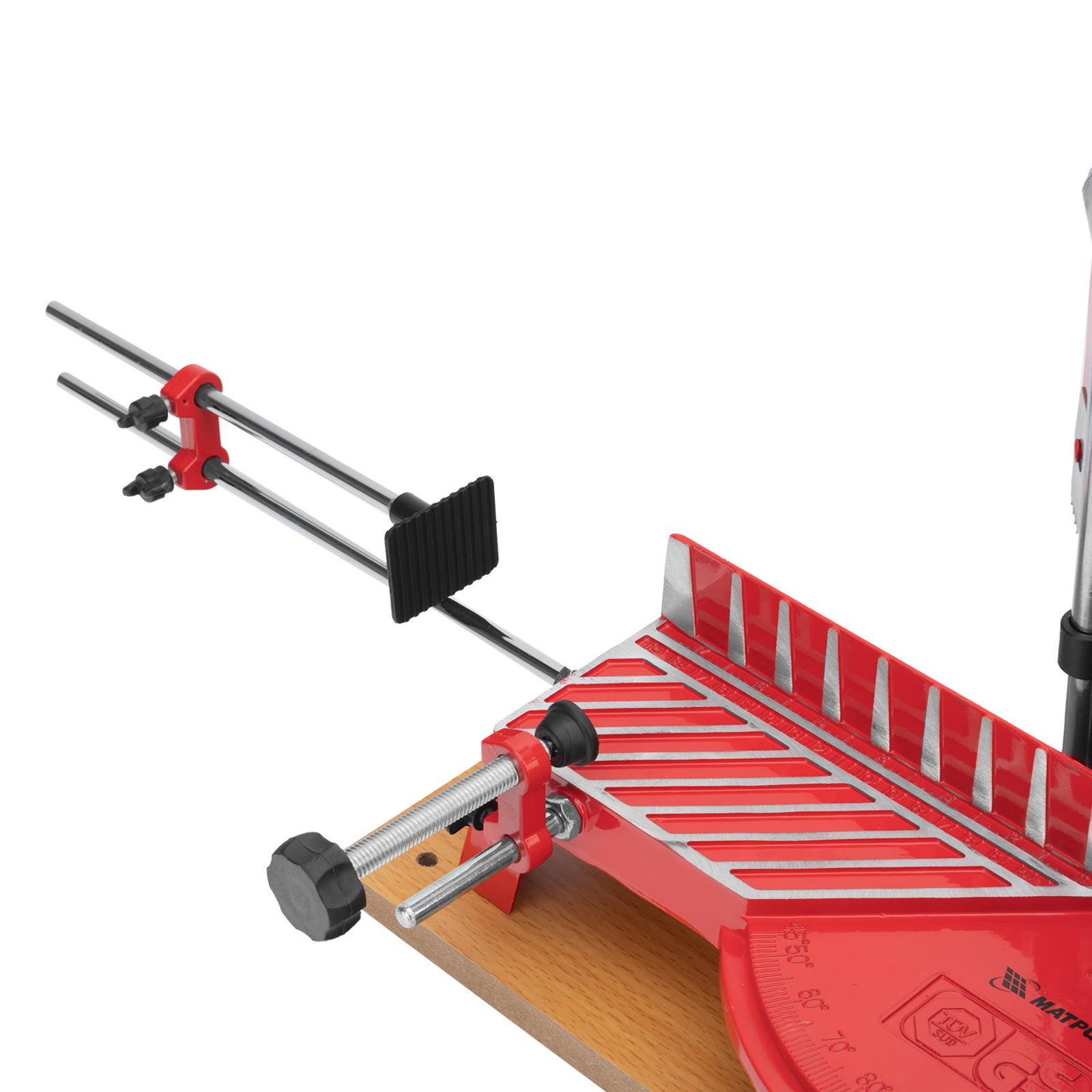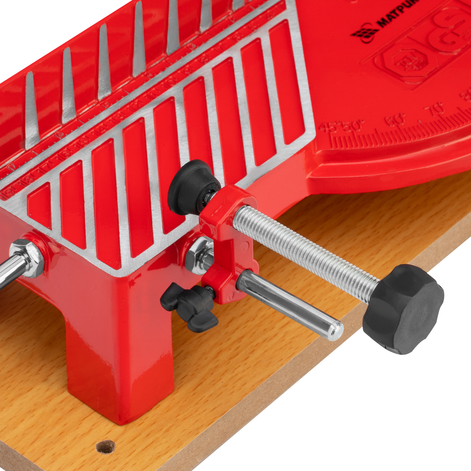 - Быстрый выбор угла распила — на корпус нанесена градусная шкала.