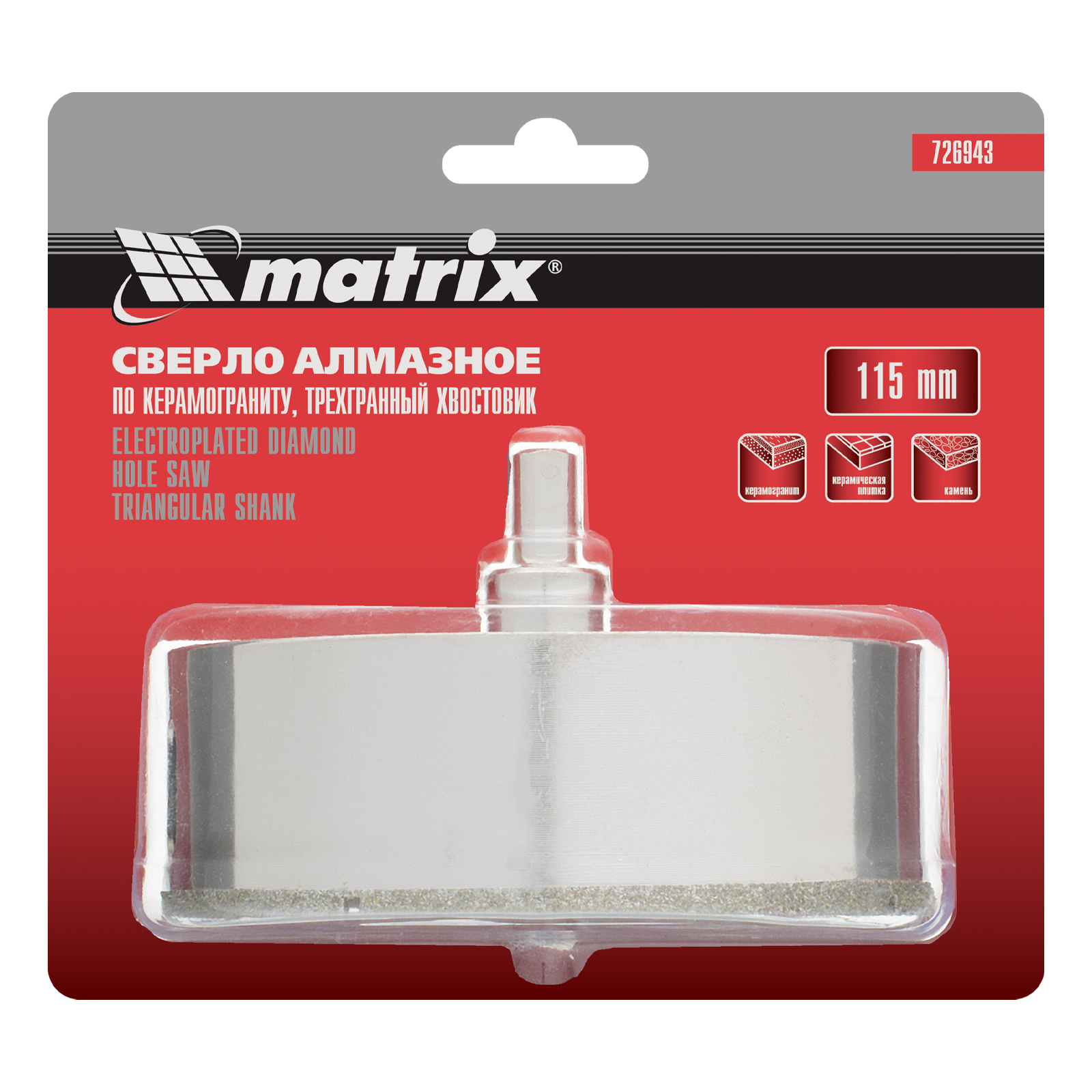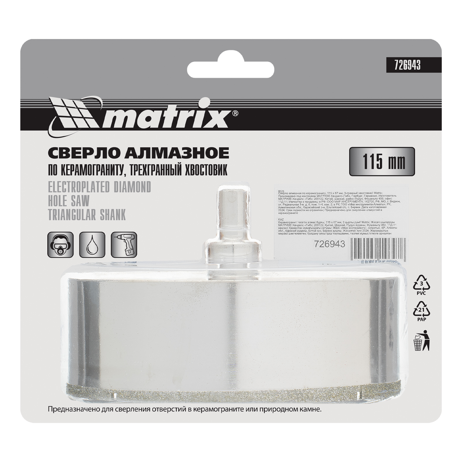 Сверло алмазное по керамограниту, 115 х 67 мм, трехгранный хвостовик Matrix