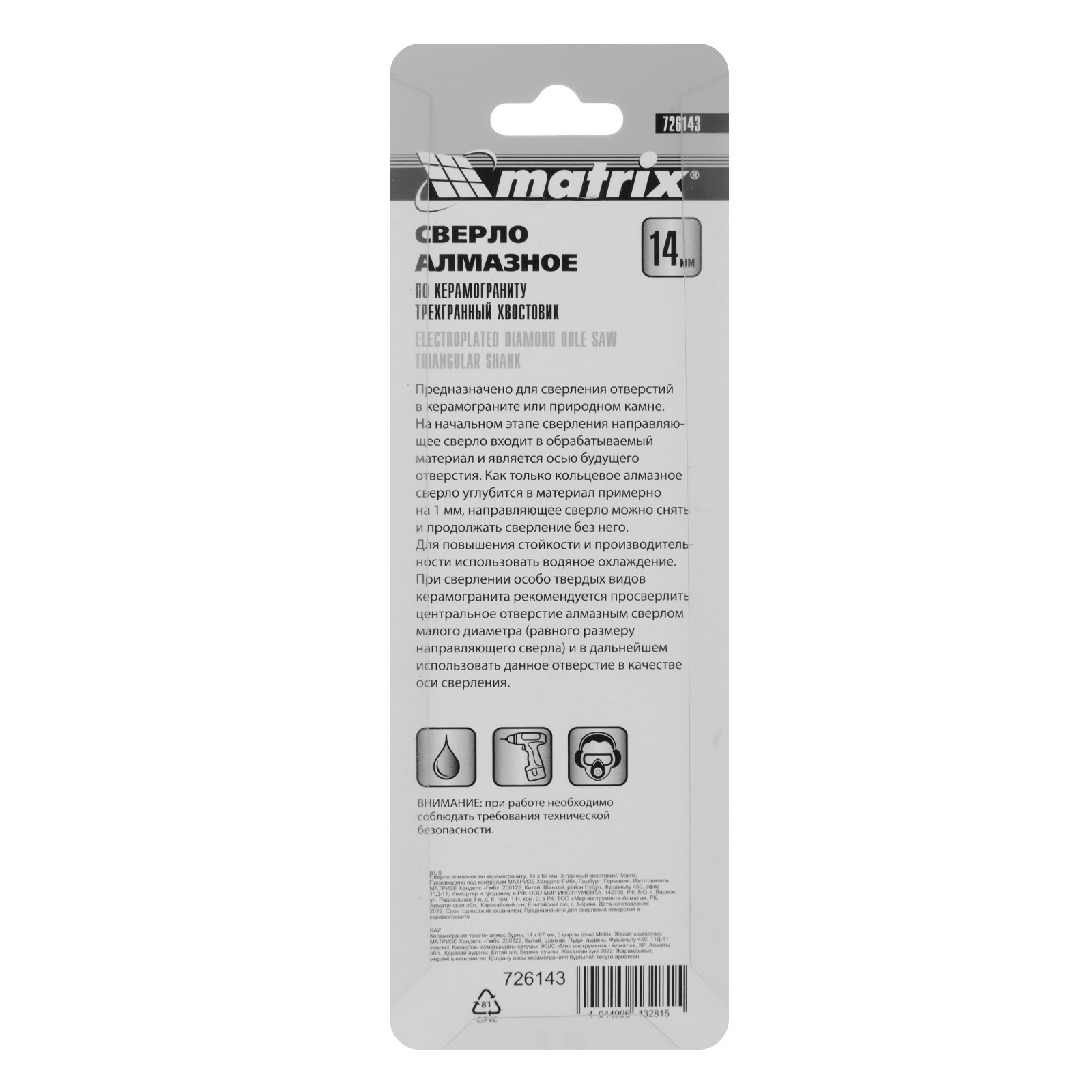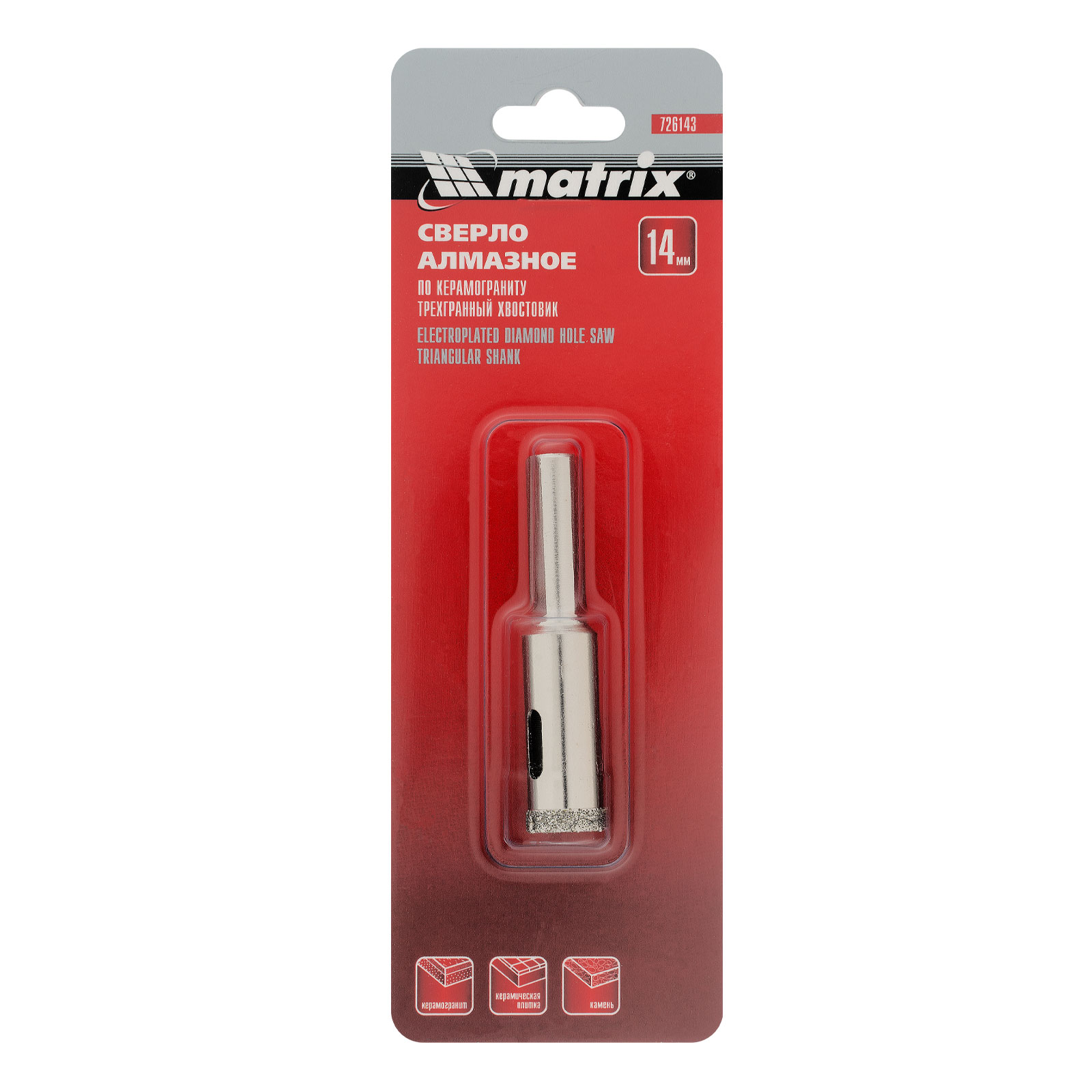Сверло алмазное по керамограниту, 14 х 67 мм, трехгранный хвостовик Matrix