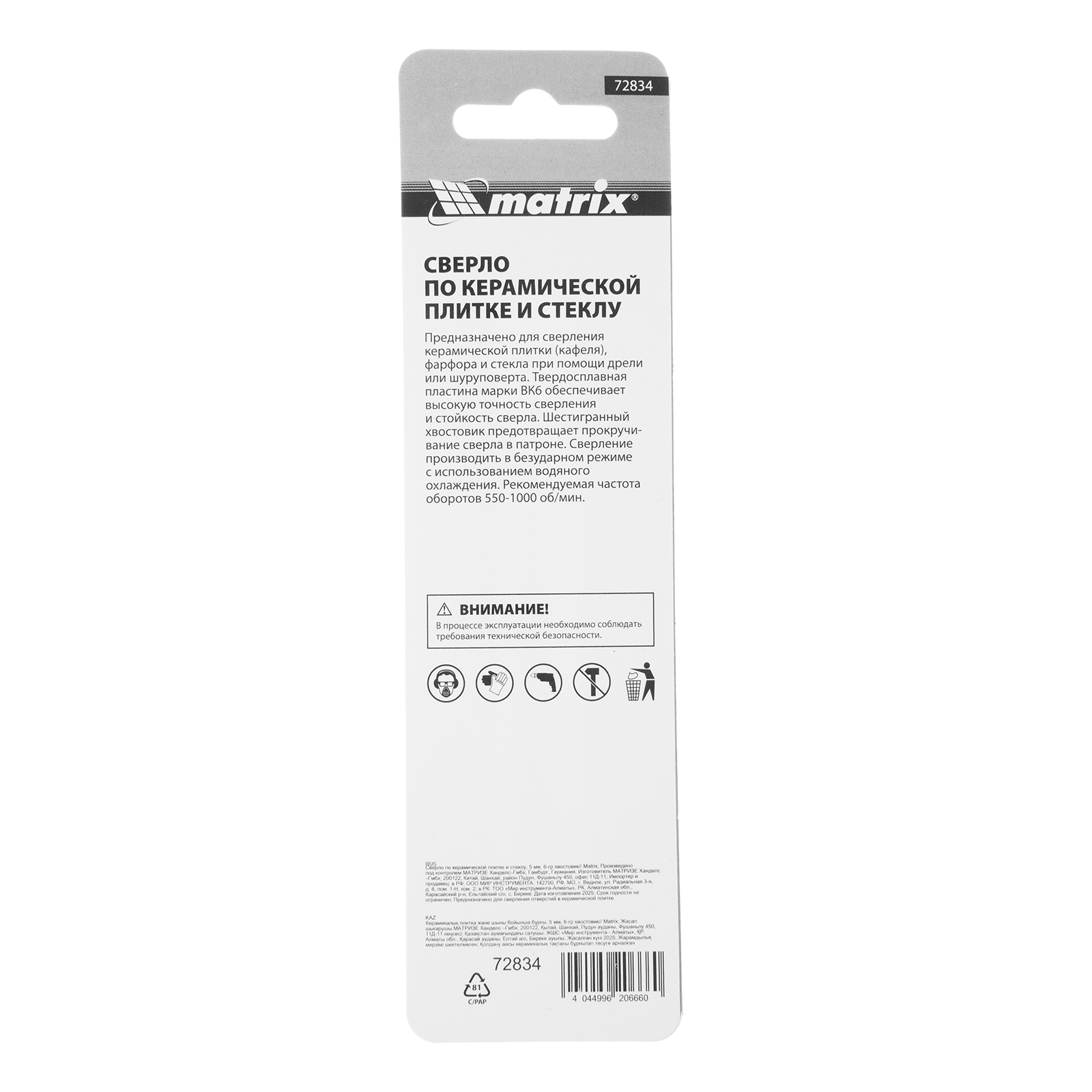Сверло по керамической плитке и стеклу, 5 мм, шестигранный хвостовик Matrix