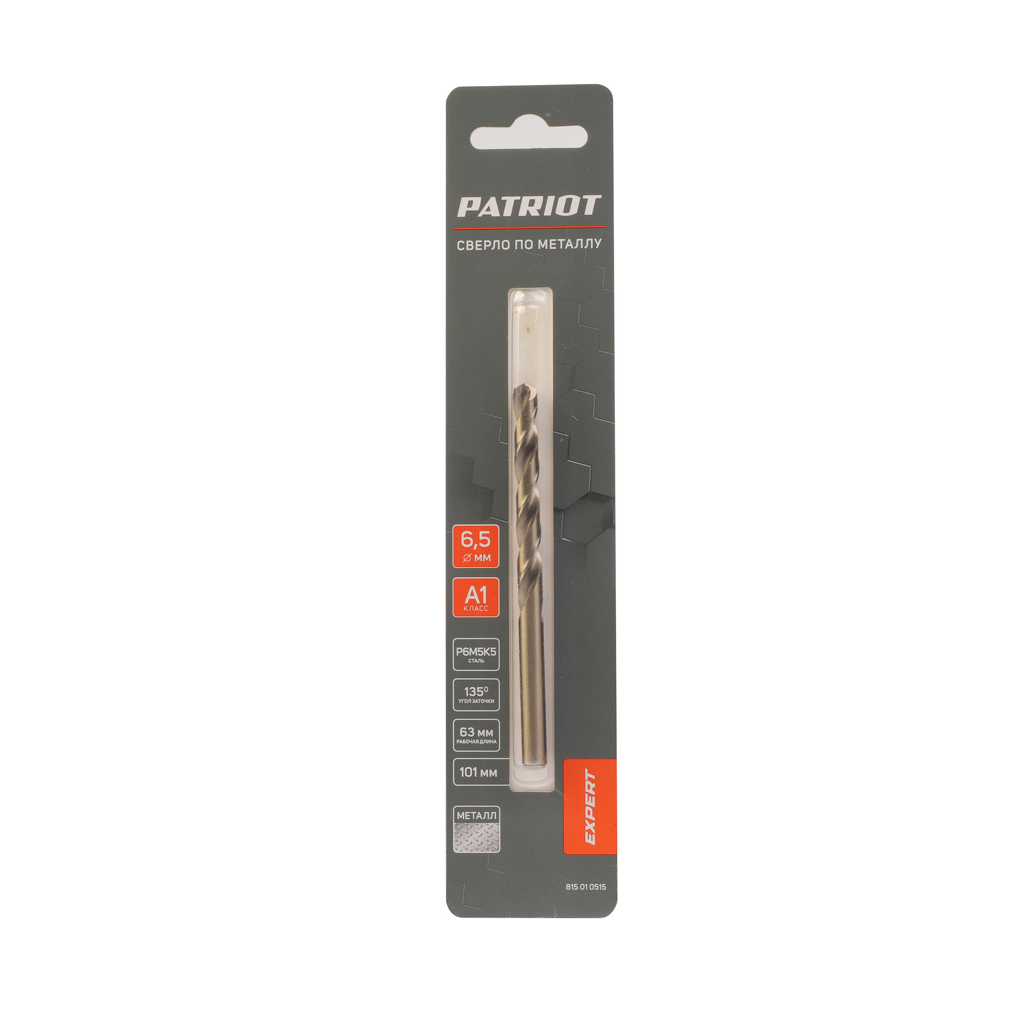 Сверло PATRIOT EXPERT по металлу, Р6М5К5, 6,5 мм, 1шт в блистере