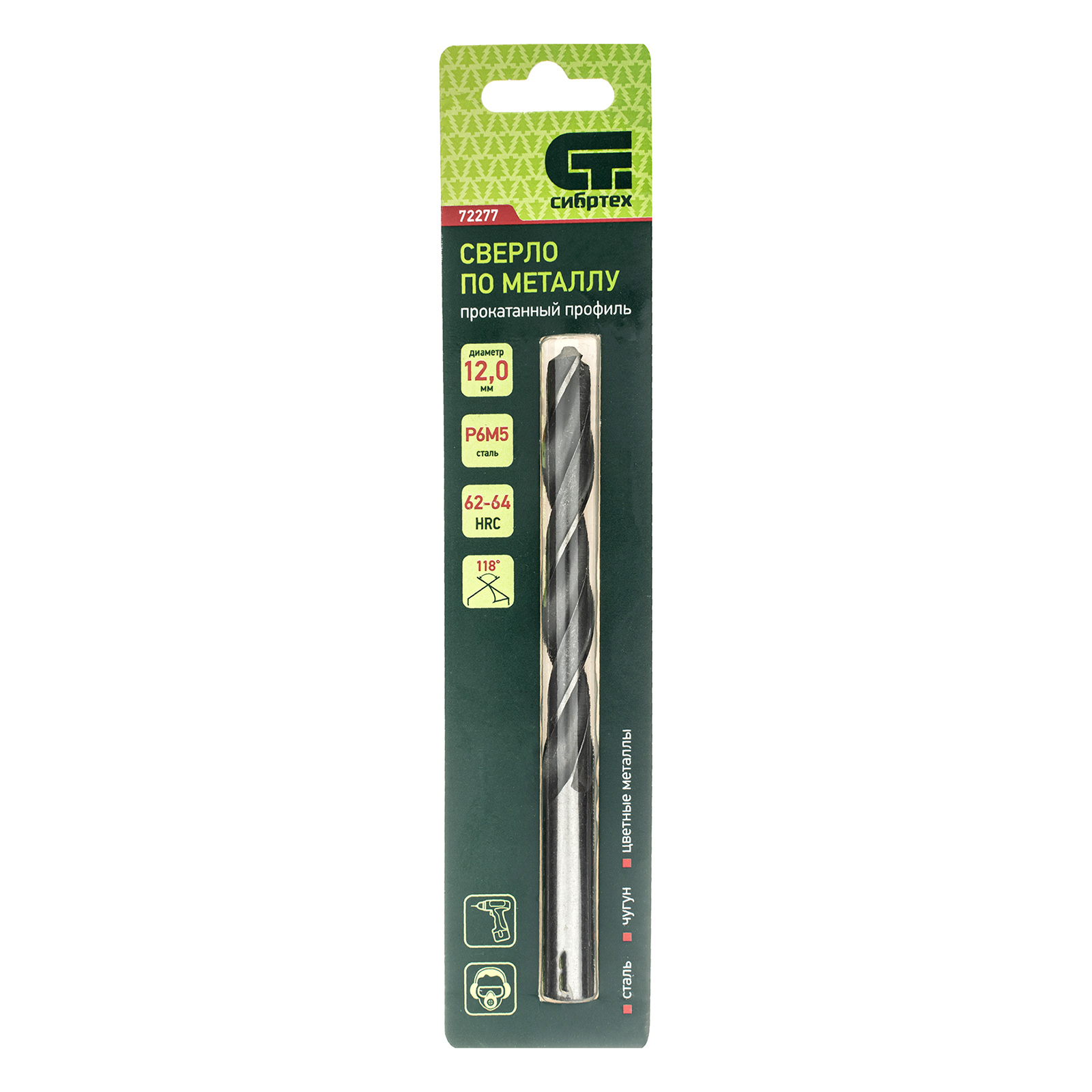 Сверло по металлу, 12 мм, Р6М5 Сибртех |