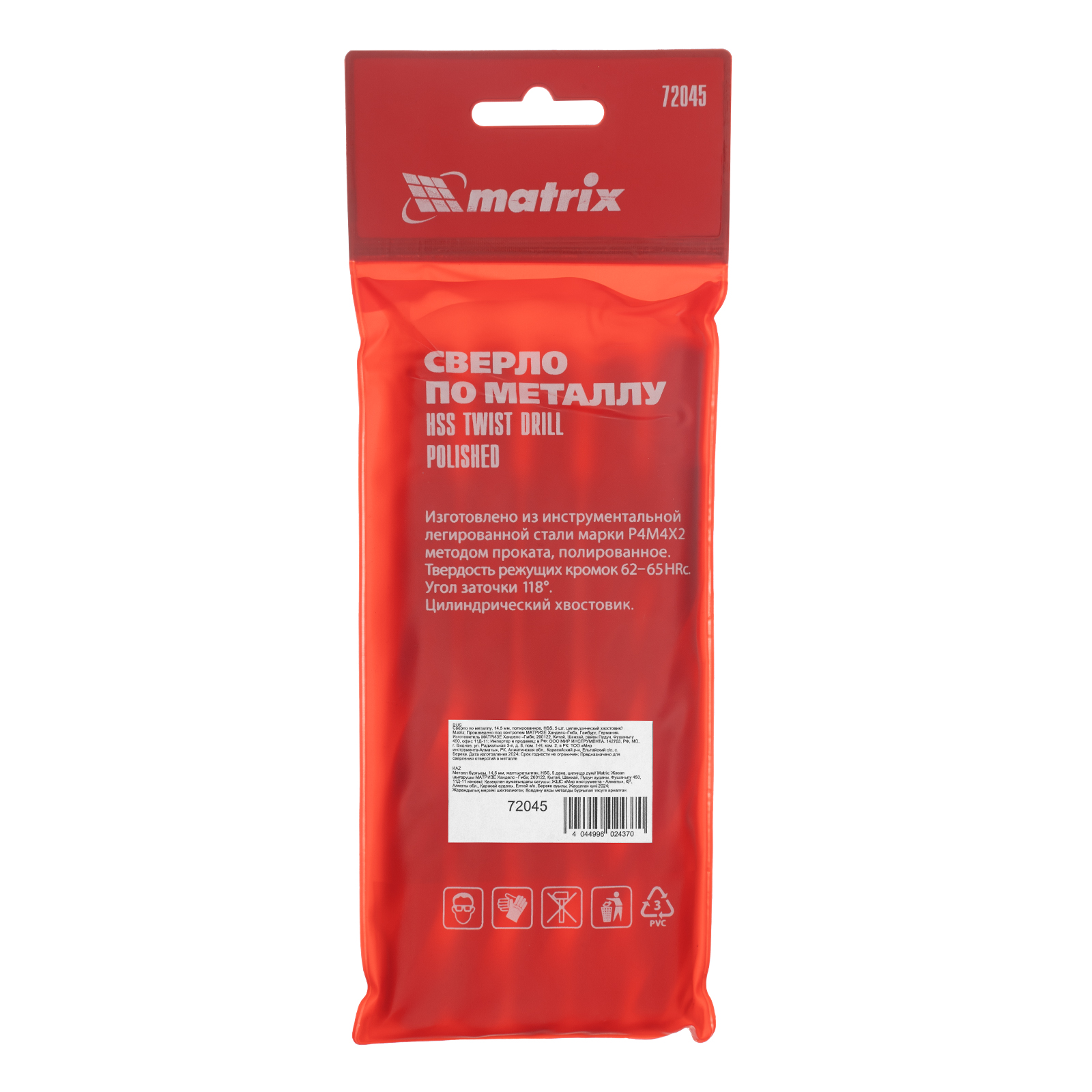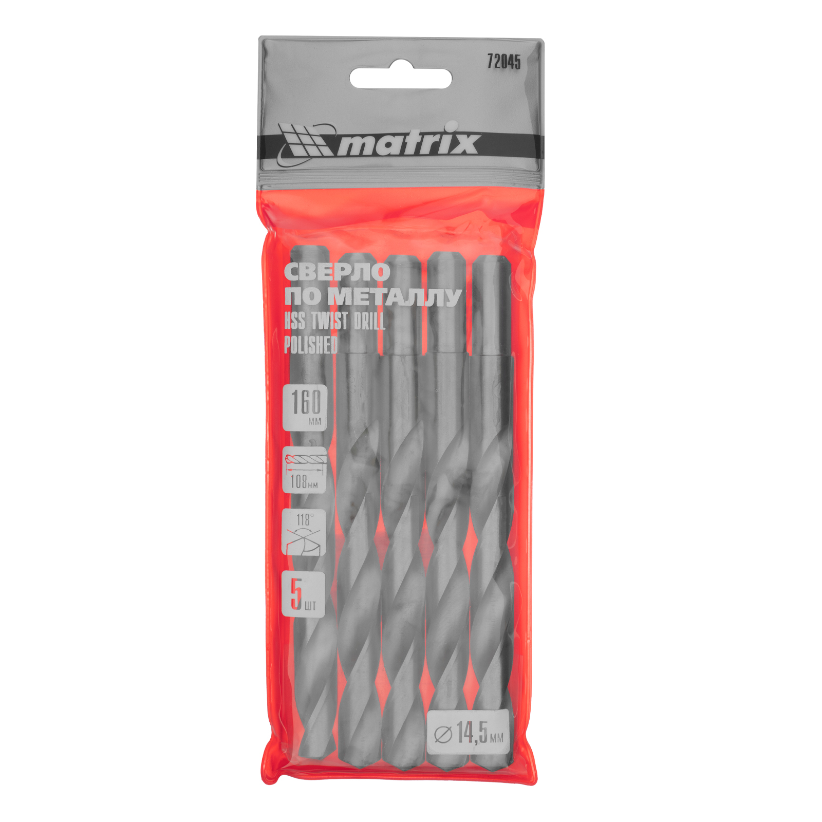 Сверло по металлу, 14.5 мм, полированное, HSS, 5 шт, цилиндрический хвостовик Matrix