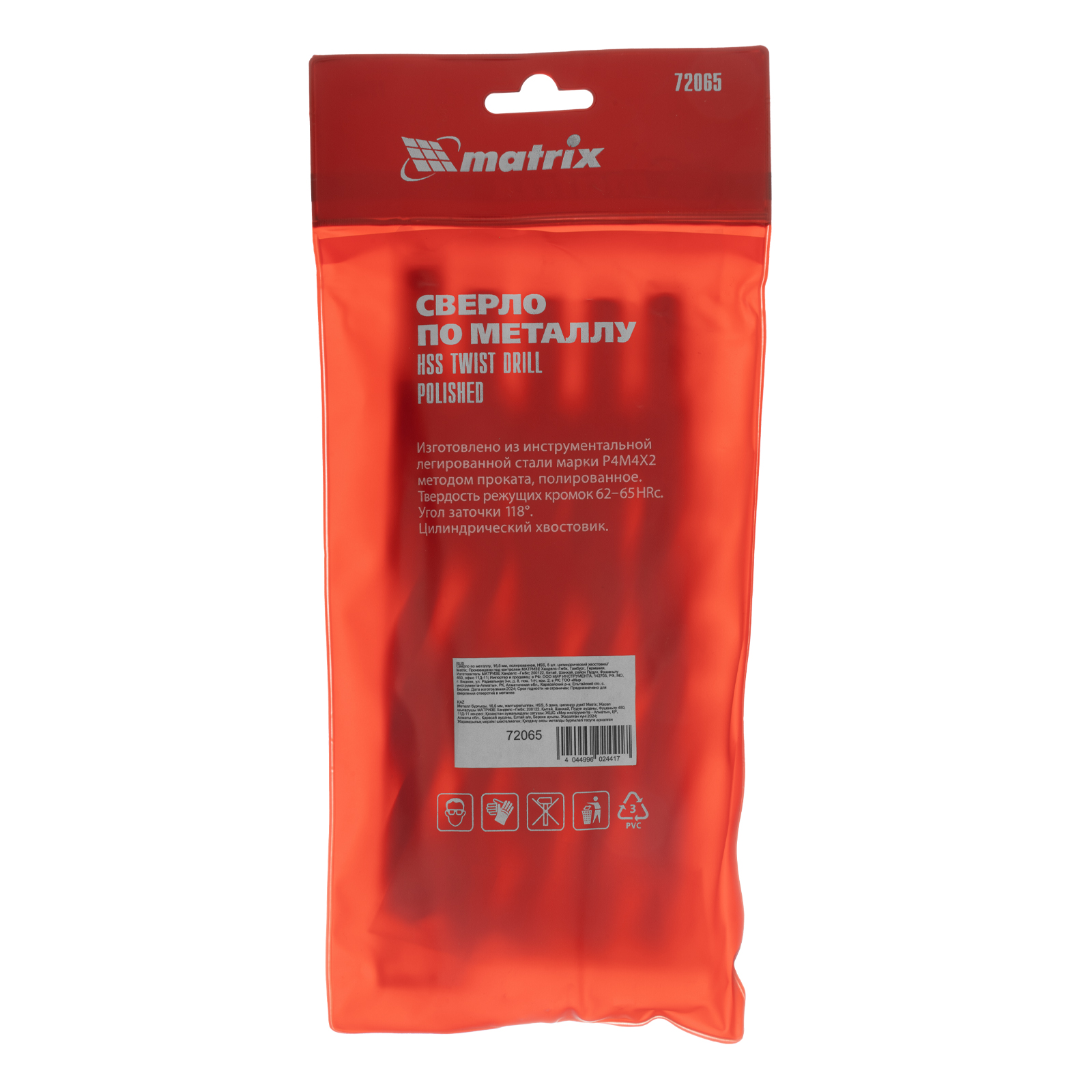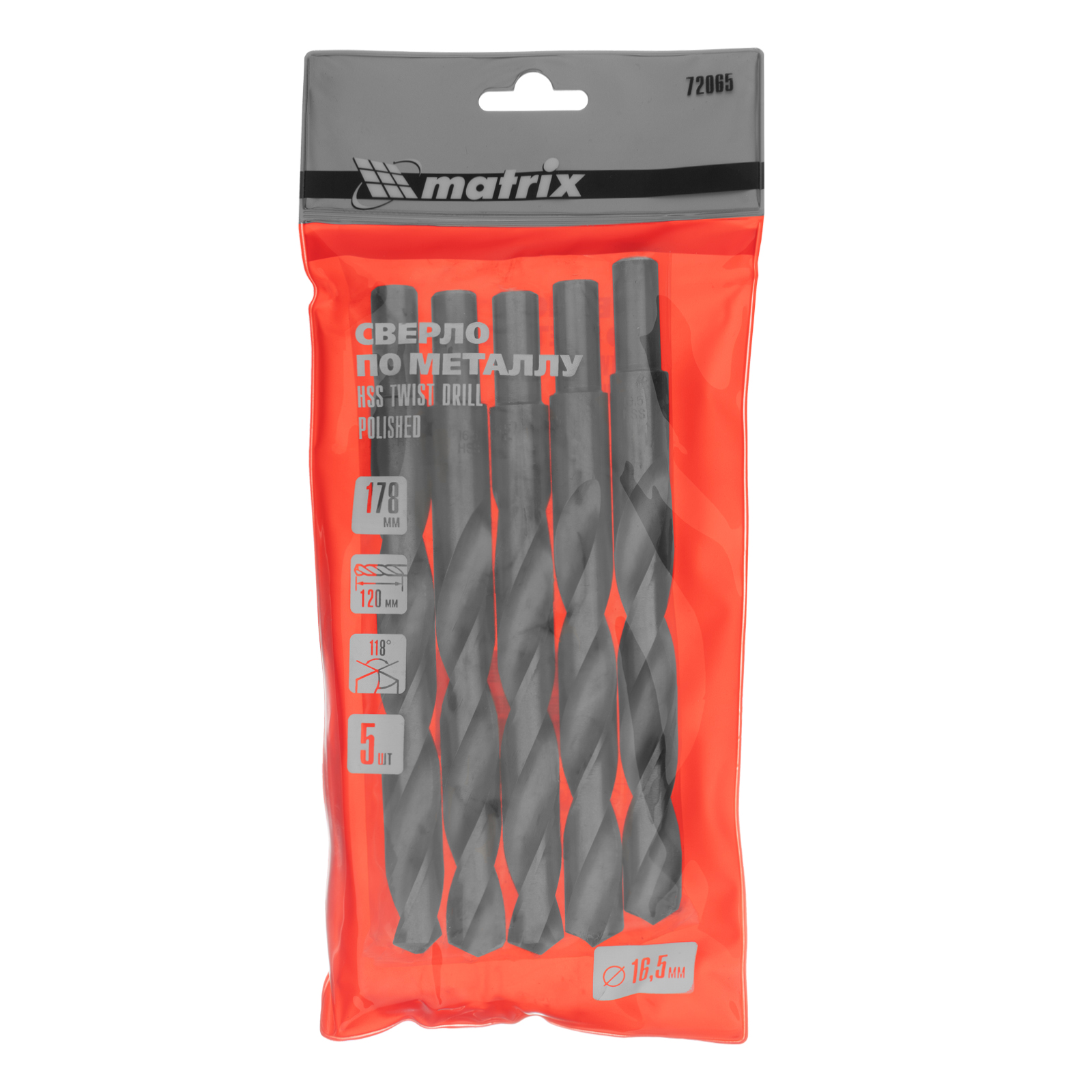 Сверло по металлу, 16.5 мм, полированное, HSS, 5 шт, цилиндрический хвостовик Matrix