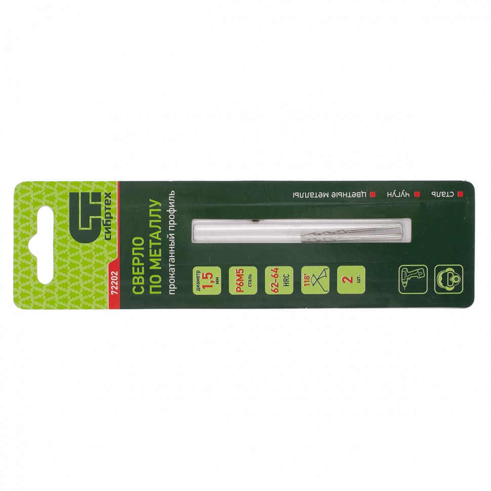 Сверло по металлу, 1.5 мм, Р6М5.2 шт Сибртех
