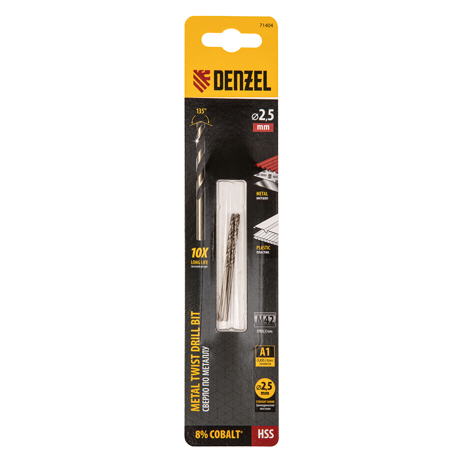 Сверло по металлу, 2,5 мм, HSS Co-8%, 2 шт.// Denzel