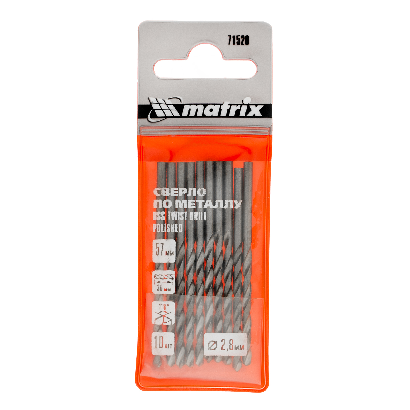 Сверло по металлу, 2.8 мм, полированное, HSS, 10 шт, цилиндрический хвостовик Matrix