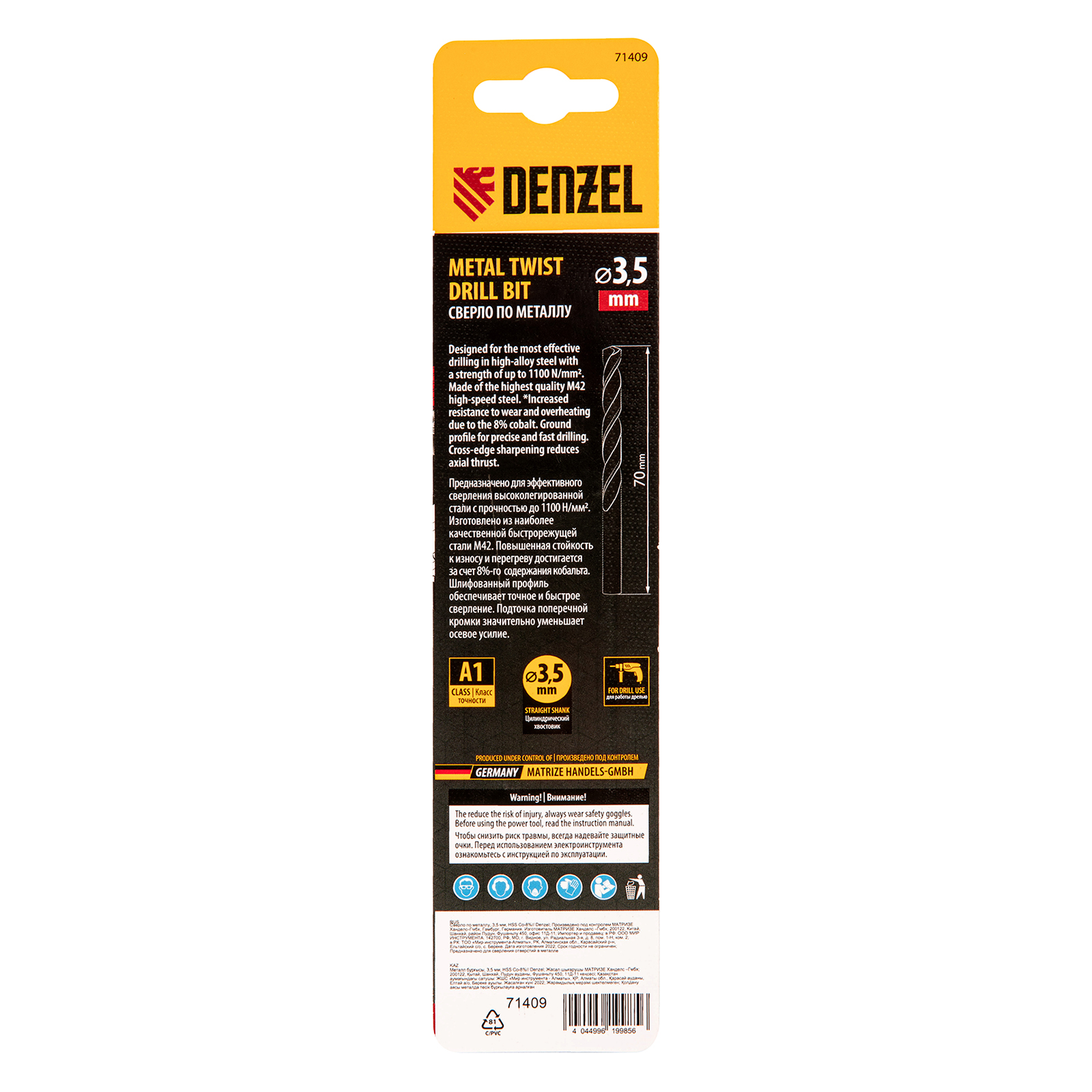 Сверло по металлу, 3,5 мм, HSS Co-8%// Denzel