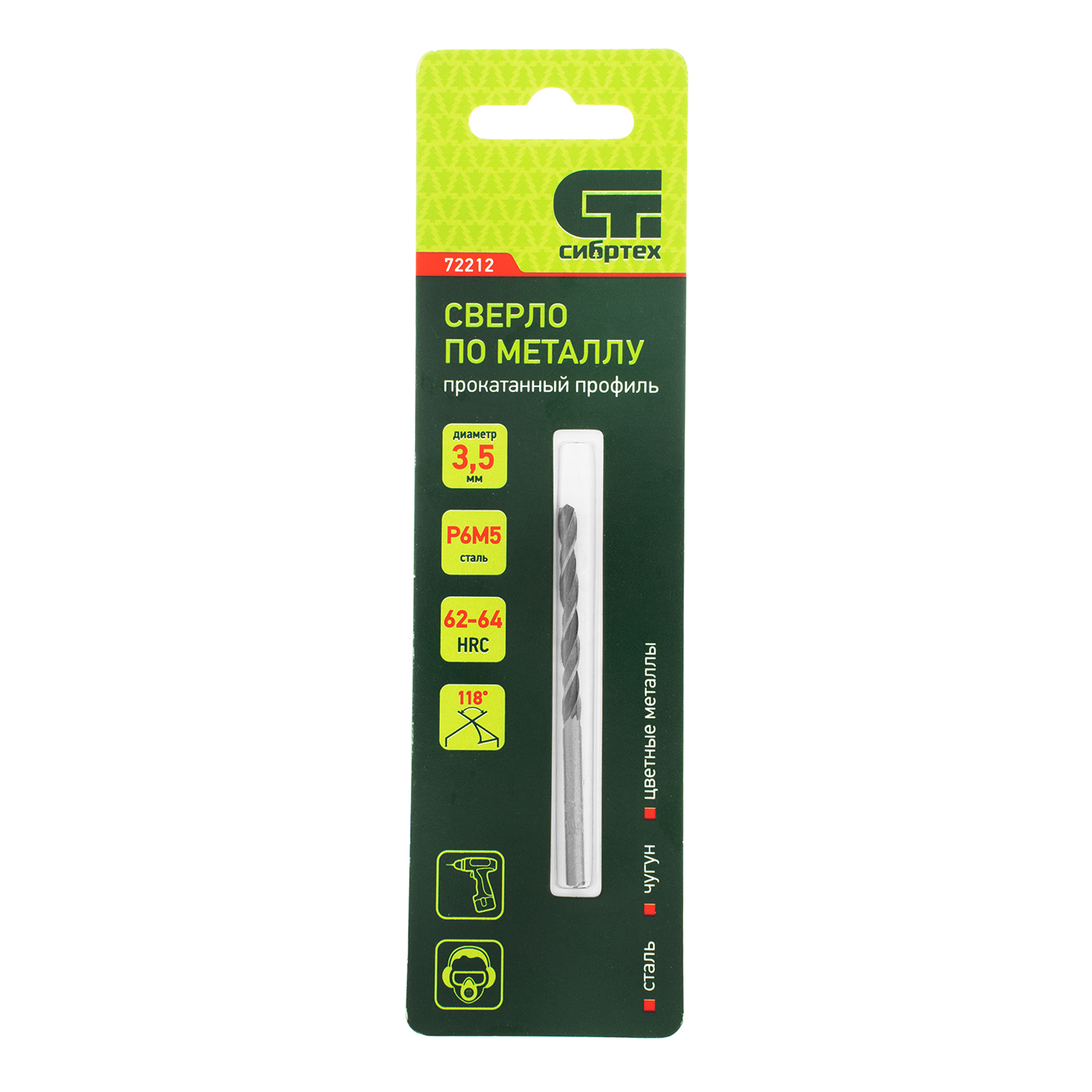 Сверло по металлу, 3.5 мм, Р6М5 Сибртех