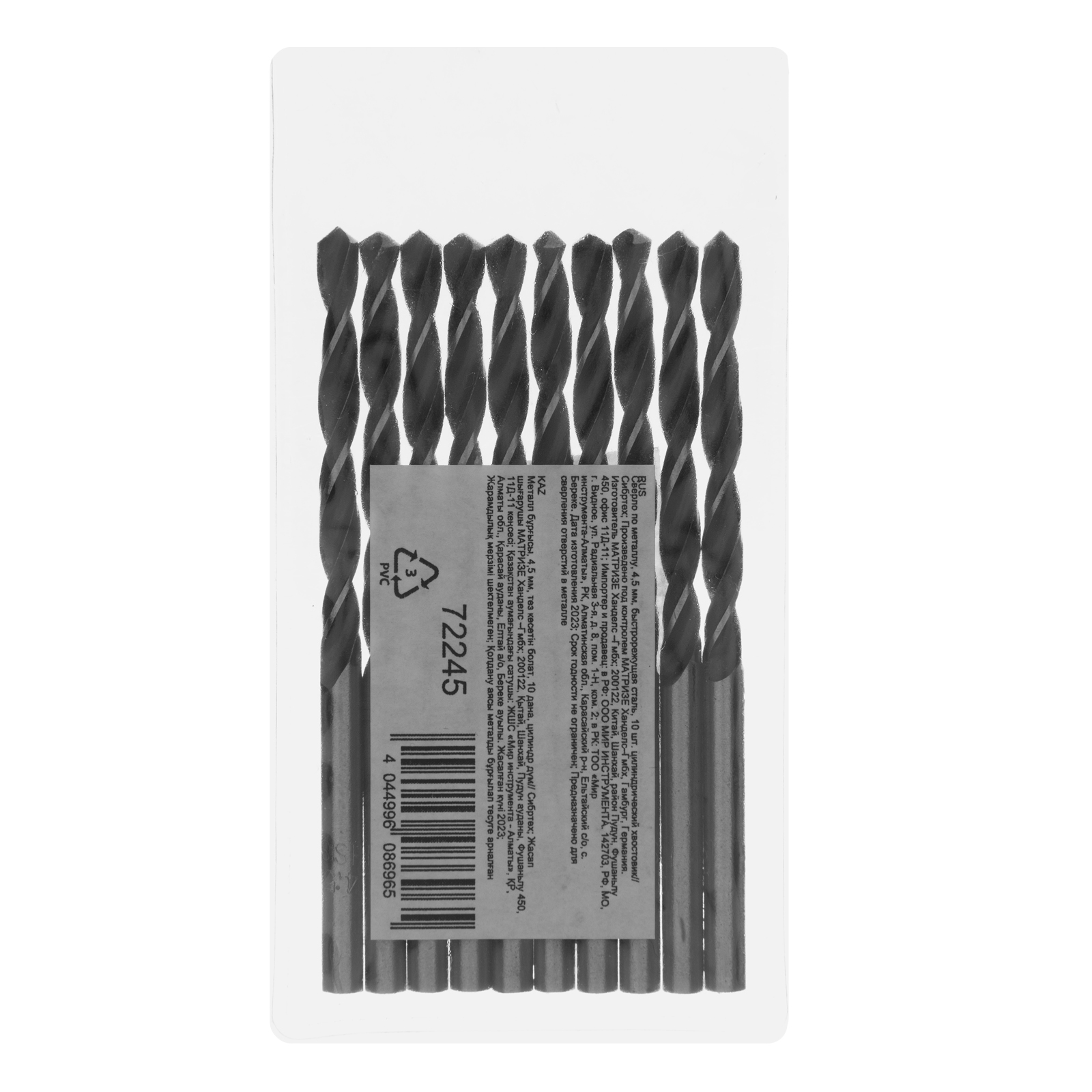 Сверло по металлу, 4.5 мм, быстрорежущая сталь, 10 шт, цилиндрический хвостовик Сибртех