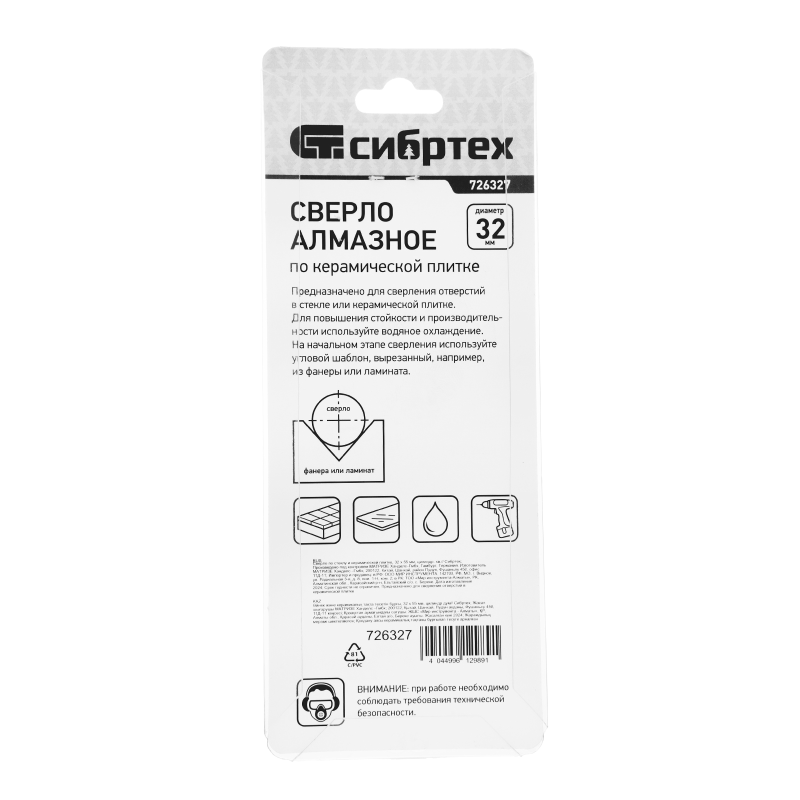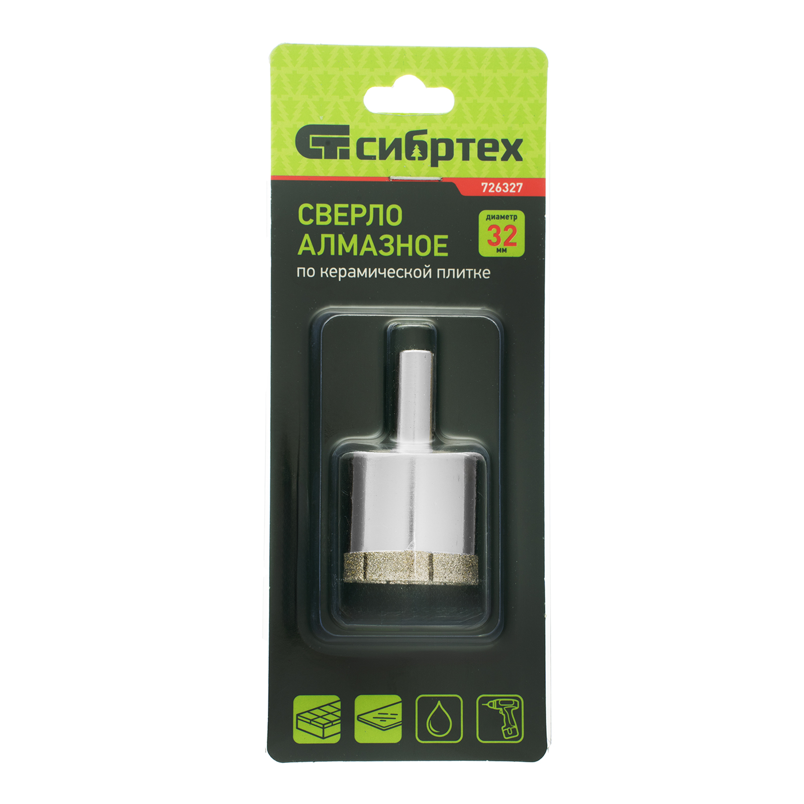 Сверло Сибртех 726327 размером 32 х 55 мм, с цилиндрическим хвостовиком, используется для получения ровных отверстий без сколов в стекле и керамической плитке. Устанавливается в патрон дрели или шуруповерта, работающих в диапазоне 350-700 об/мин. Во время работы рекомендуется применять водяное охлаждение — это существенно увеличит ресурс оснастки. Использование кондуктора (арт. 72830) позволяет точно позиционировать сверло и облегчает засверливание. Оснастка подходит для выполнения работ небольшого объема и рекомендована для использования в быту.