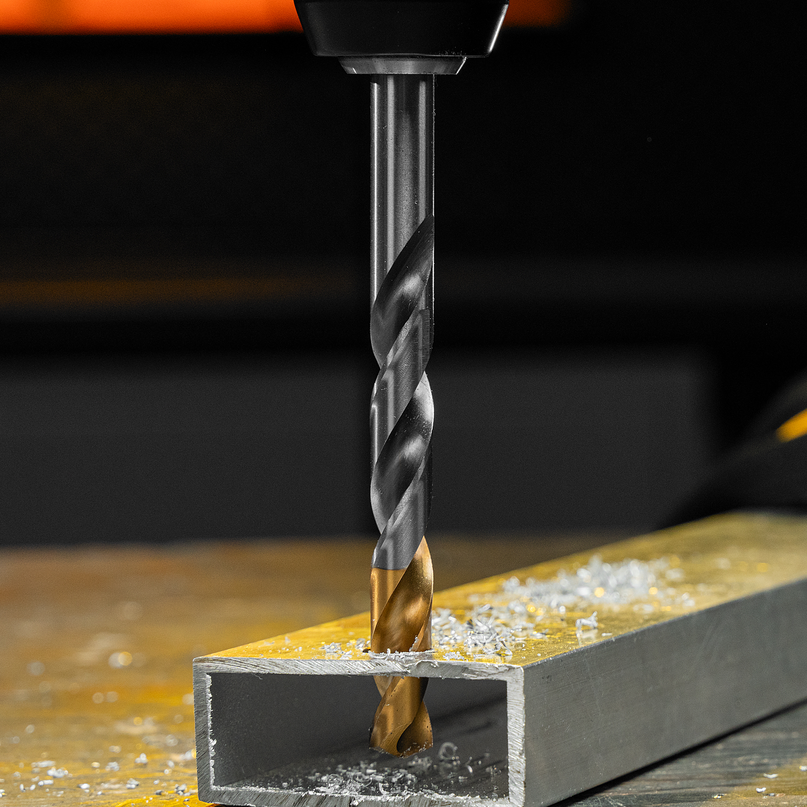- Высокая производительность — поверхность сверла покрыта нитридом титана, что снижает трение о стенки отверстия и уменьшает нагрев, а также улучшает отвод стружки.