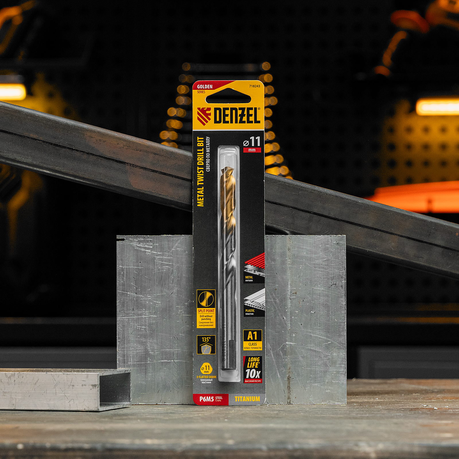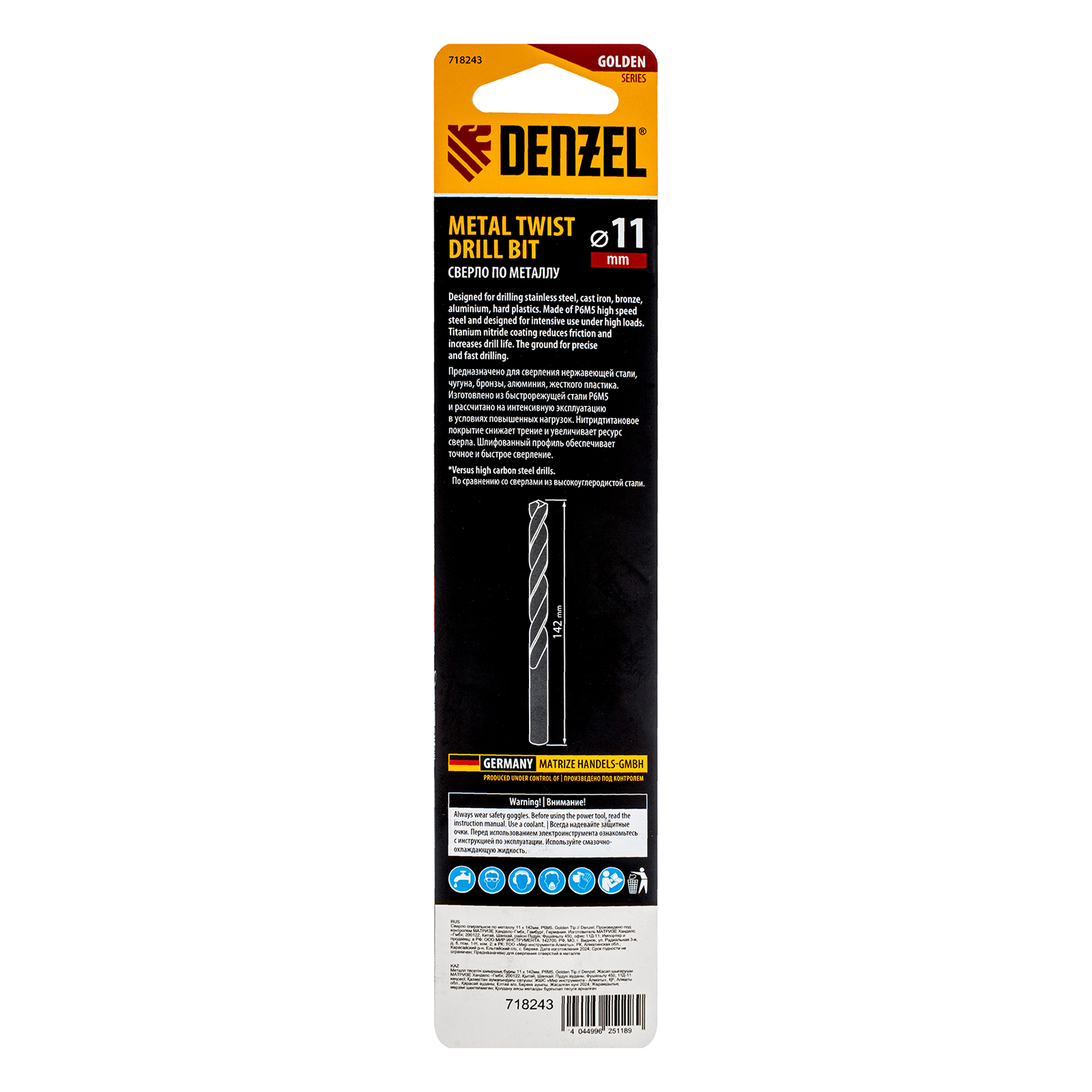 Сверло спиральное по металлу 11 x 142 мм, Р6М5, Golden Tip Denzel