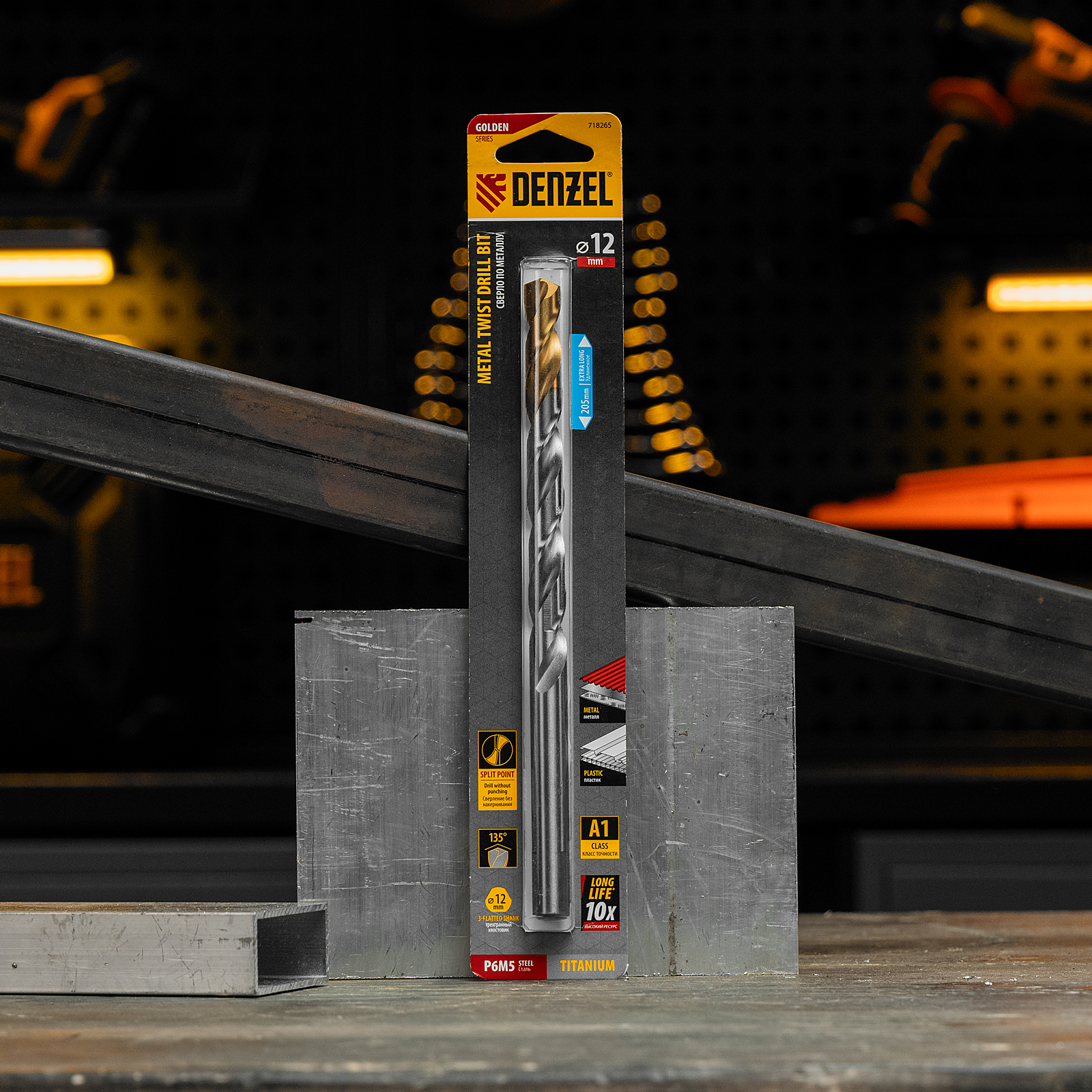Удлиненное спиральное сверло по металлу Denzel Golden Tip 718265 из стали P6M5, размером 12 х 205 мм, предназначено для получения отверстий в легированных и цветных металлах — меди, алюминии, мягкой бронзе, титане, латуни. Оснастка позволяет эффективно справляться с этими задачами благодаря оптимальному углу заточки 135°. Класс точности A гарантирует высокое качество работ, а удлиненный профиль позволяет сверлить глубокие отверстия. Сверло используется для проведения монтажно-сборочных работ.