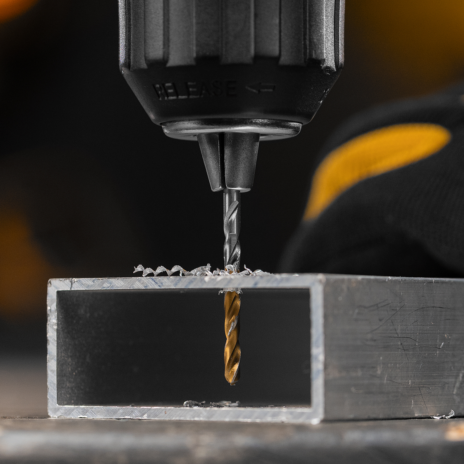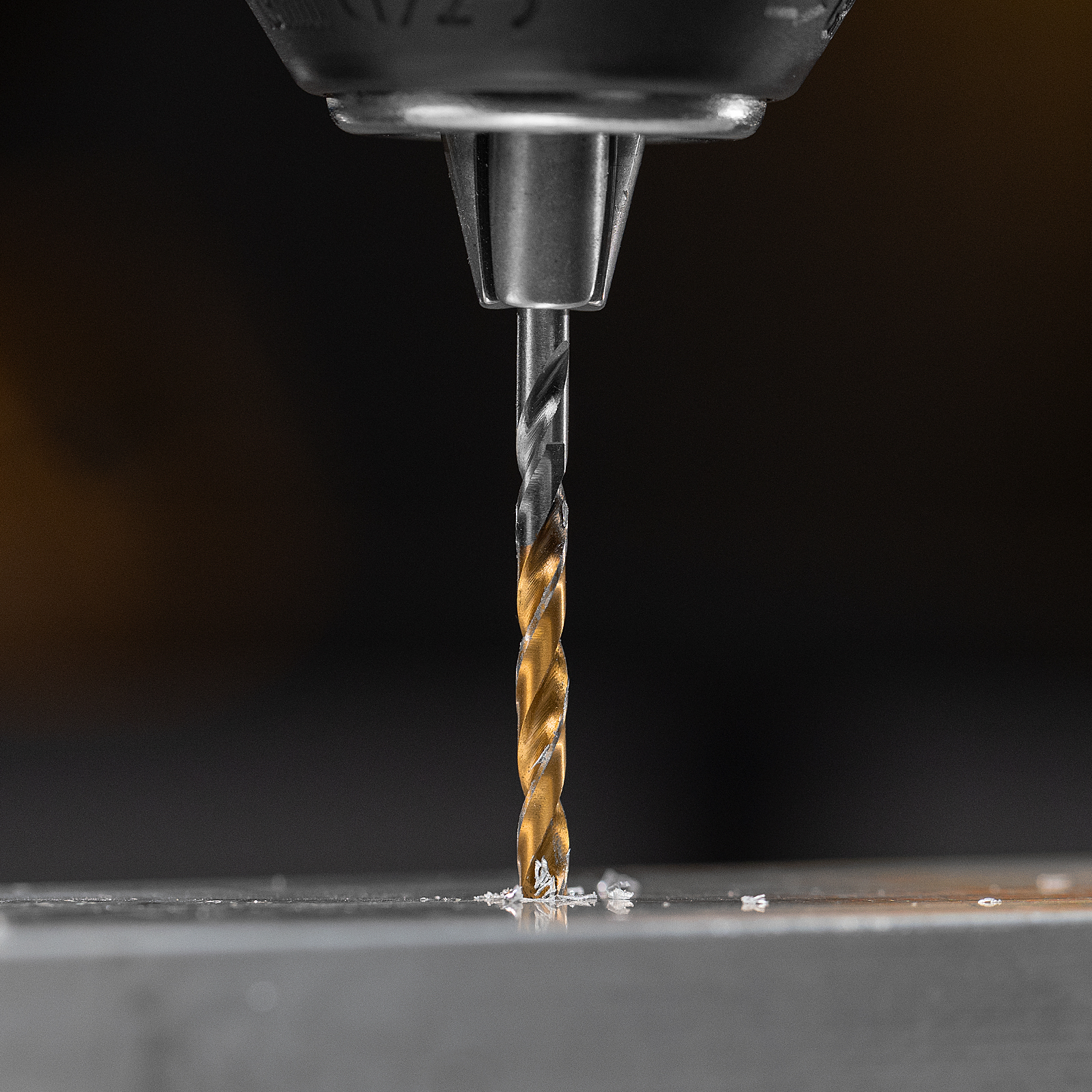 - Высокая производительность — поверхность сверла покрыта нитридом титана, что снижает трение о стенки отверстия и уменьшает нагрев, а также улучшает отвод стружки.