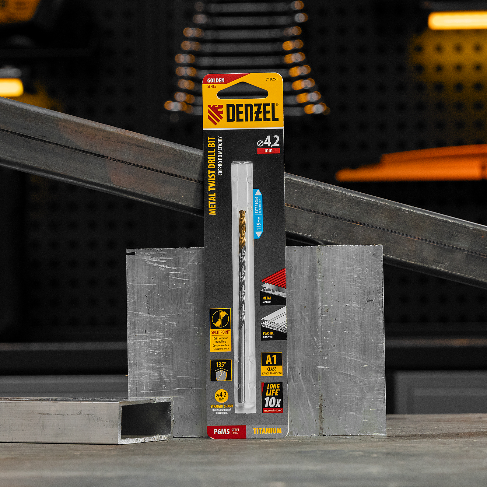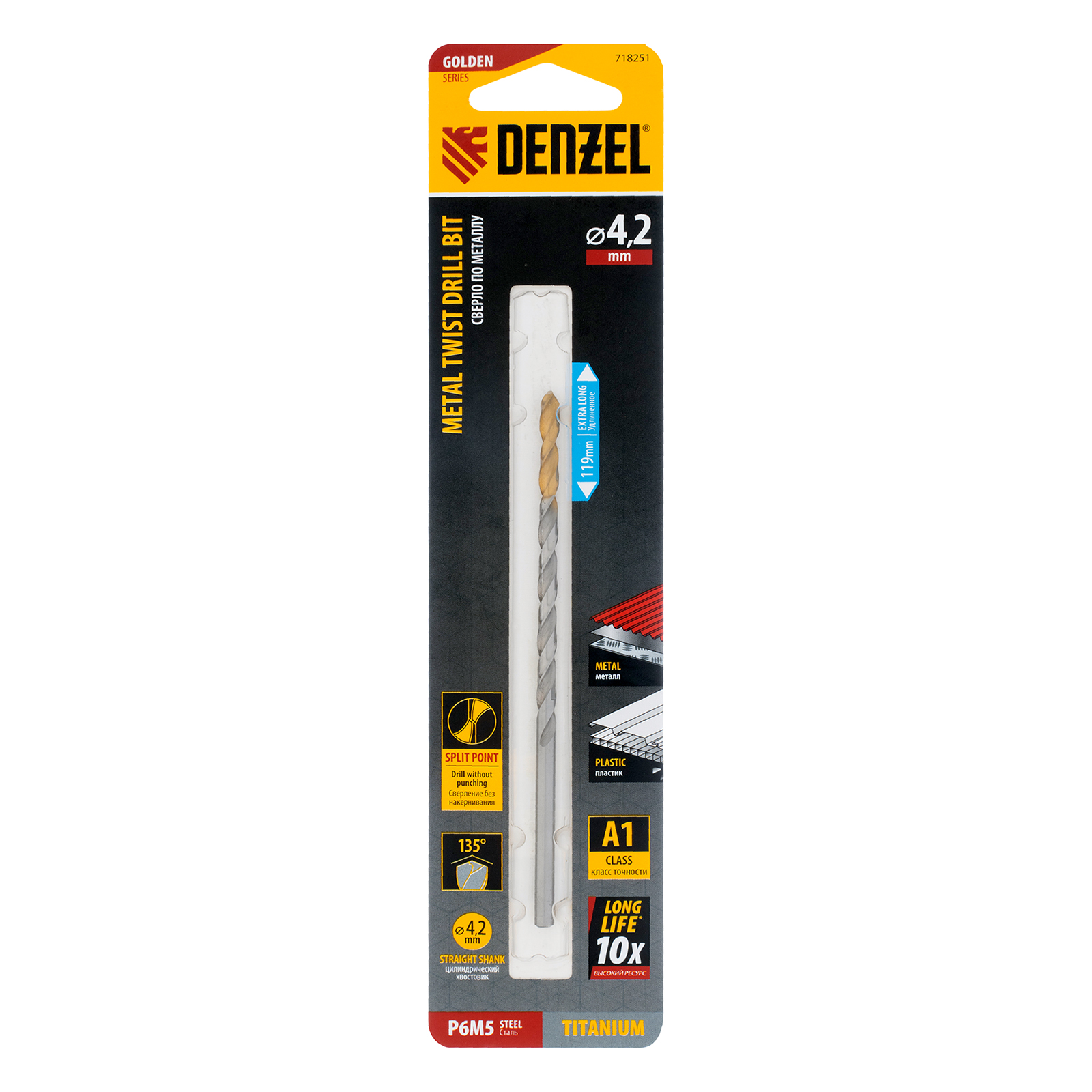 Сверло спиральное по металлу 4,2 х 119 мм, Р6М5, Golden Tip, удлиненное Denzel