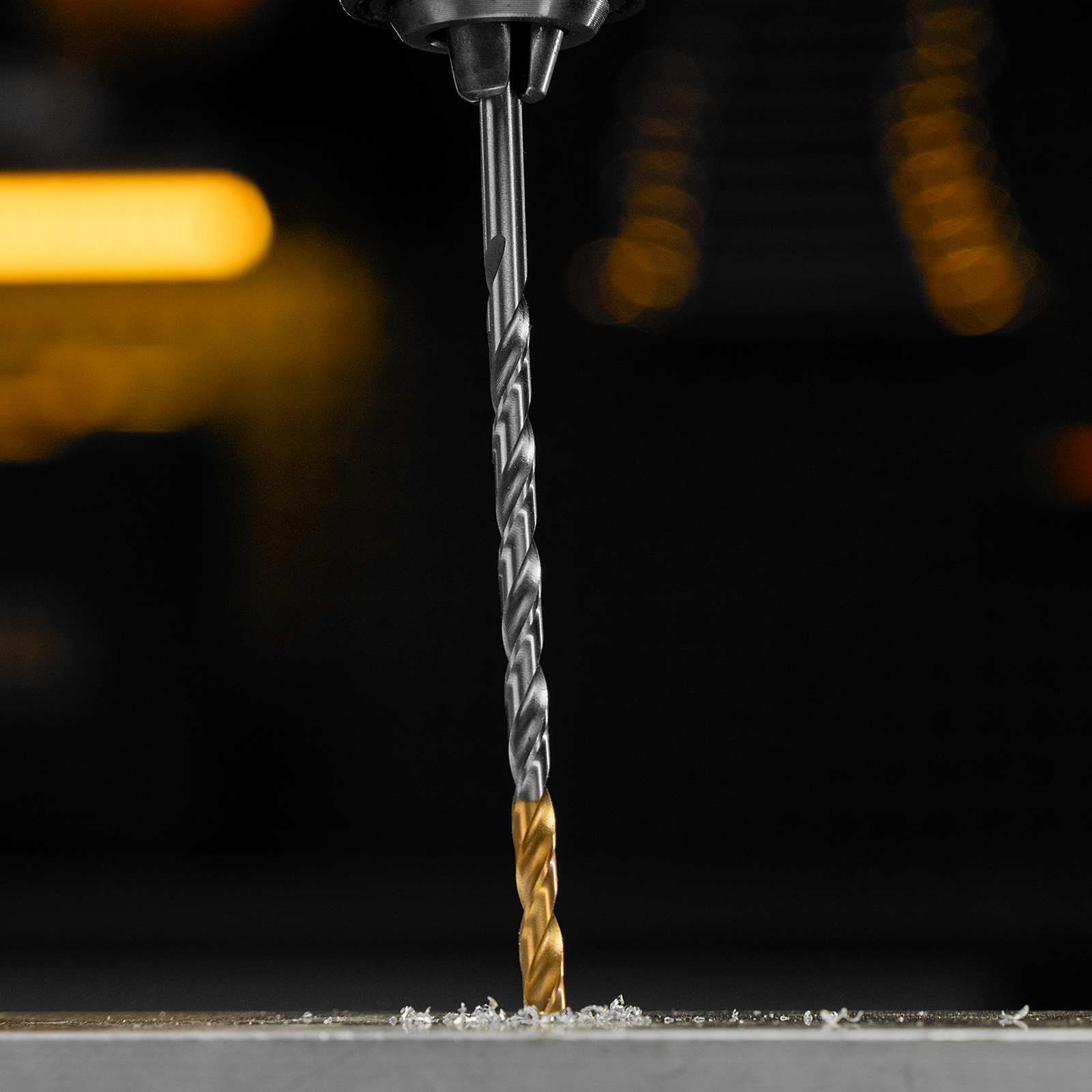 - Высокая производительность — поверхность сверла покрыта нитридом титана, что снижает трение о стенки отверстия и уменьшает нагрев, а также улучшает отвод стружки.