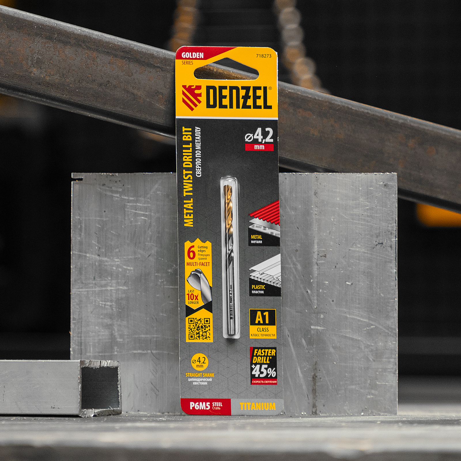 Сверло спиральное по металлу 4,2 x 75мм, Р6М5, Golden Tip, многогранная заточка Denzel