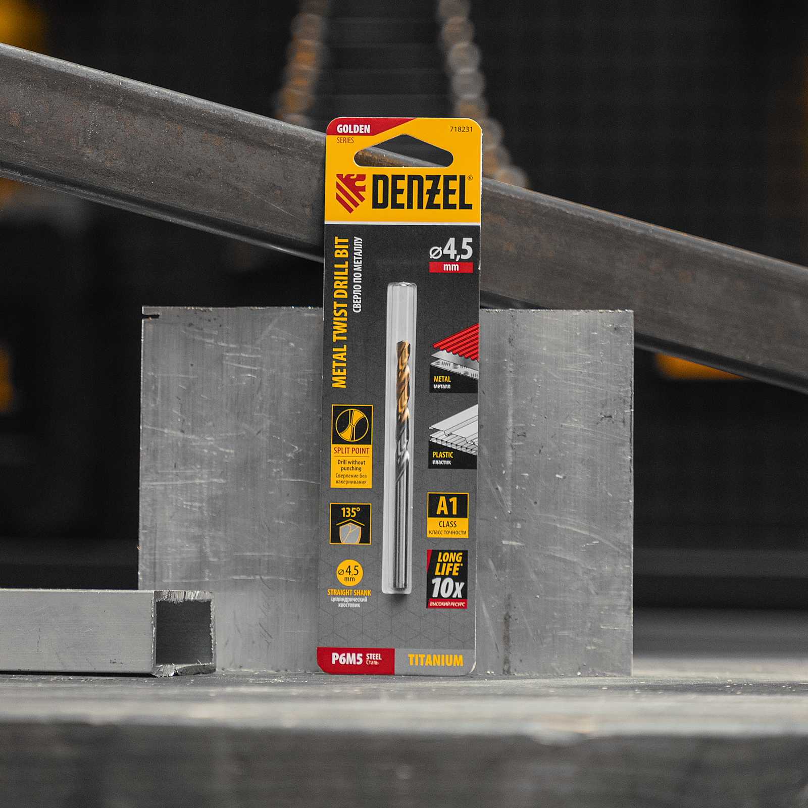 Спиральное сверло по металлу Denzel Golden Tip 718231 из стали P6M5, размером 4,5 х 80 мм, предназначено для получения отверстий в легированных и цветных металлах — меди, алюминии, мягкой бронзе, титане, латуни. Оснастка позволяет эффективно справляться с поставленными задачами благодаря оптимальному углу заточки 135°. Класс точности A гарантирует высокое качество полученных отверстий. Сверло используется для проведения монтажно-сборочных работ.