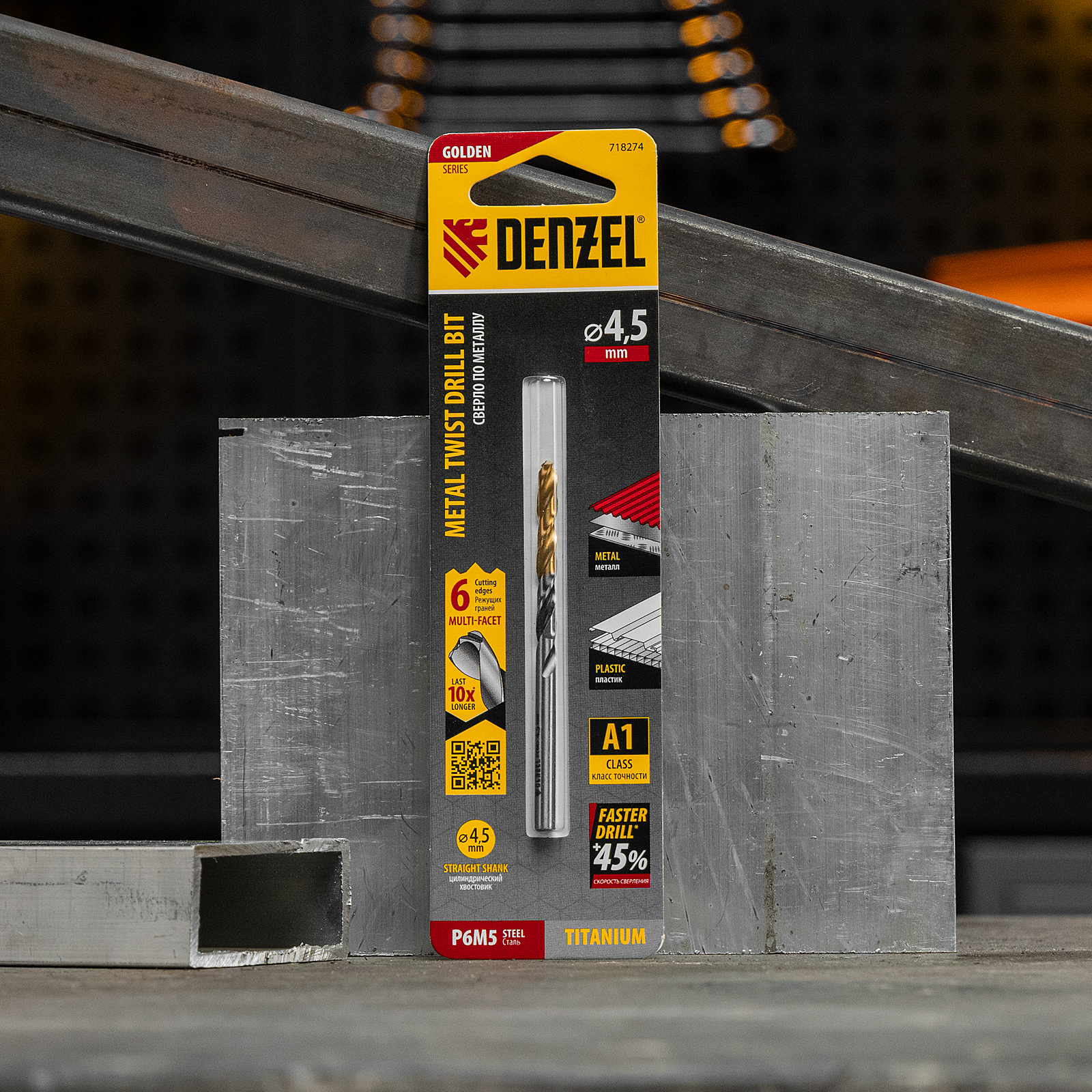 Сверло спиральное по металлу 4,5 x 80мм, Р6М5, Golden Tip, многогранная заточка Denzel