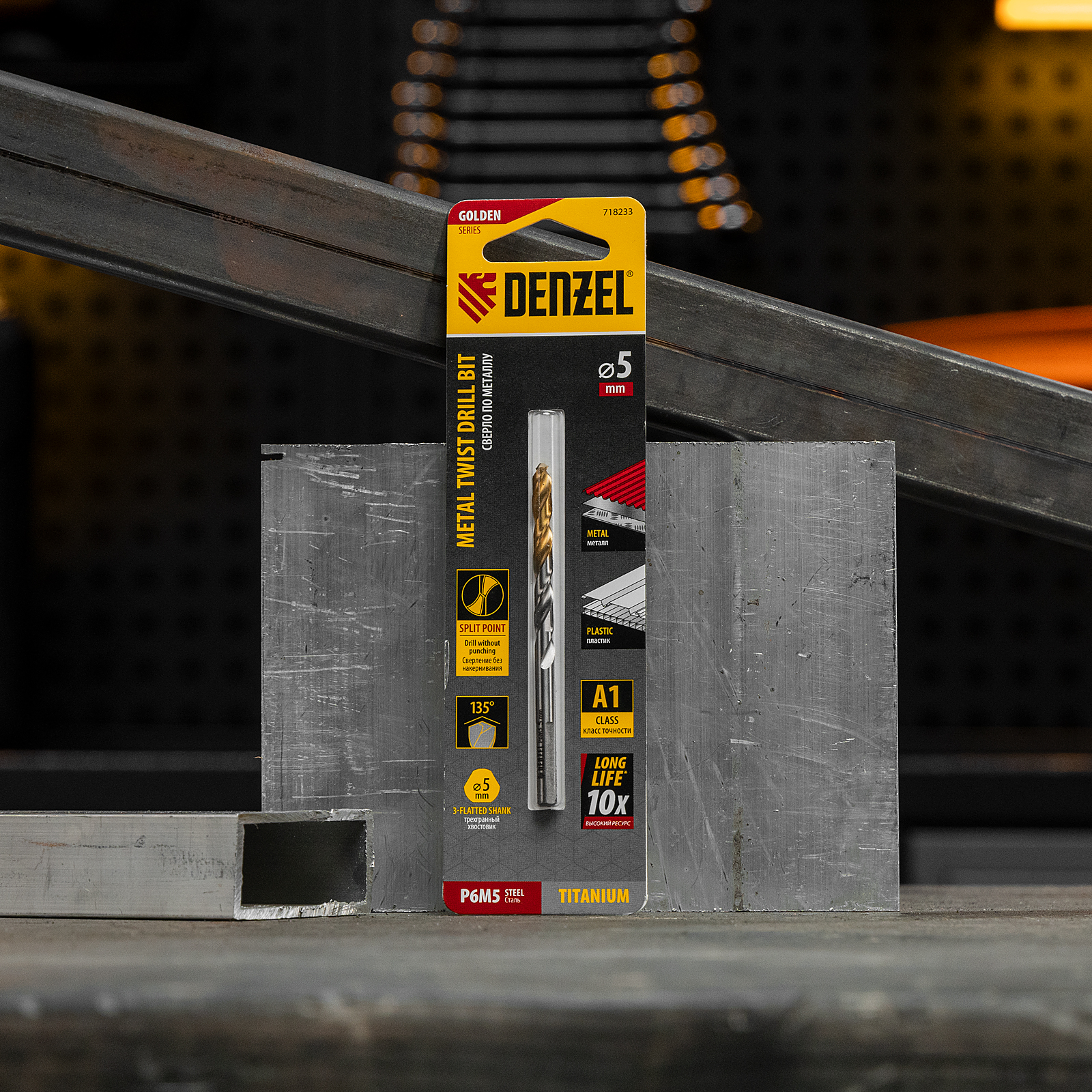 Спиральное сверло по металлу Denzel Golden Tip 718233 из стали P6M5, размером 5 х 86 мм, предназначено для получения отверстий в легированных и цветных металлах — меди, алюминии, мягкой бронзе, титане, латуни. Оснастка позволяет эффективно справляться с поставленными задачами благодаря оптимальному углу заточки 135°. Класс точности A гарантирует высокое качество полученных отверстий. Сверло используется для проведения монтажно-сборочных работ.