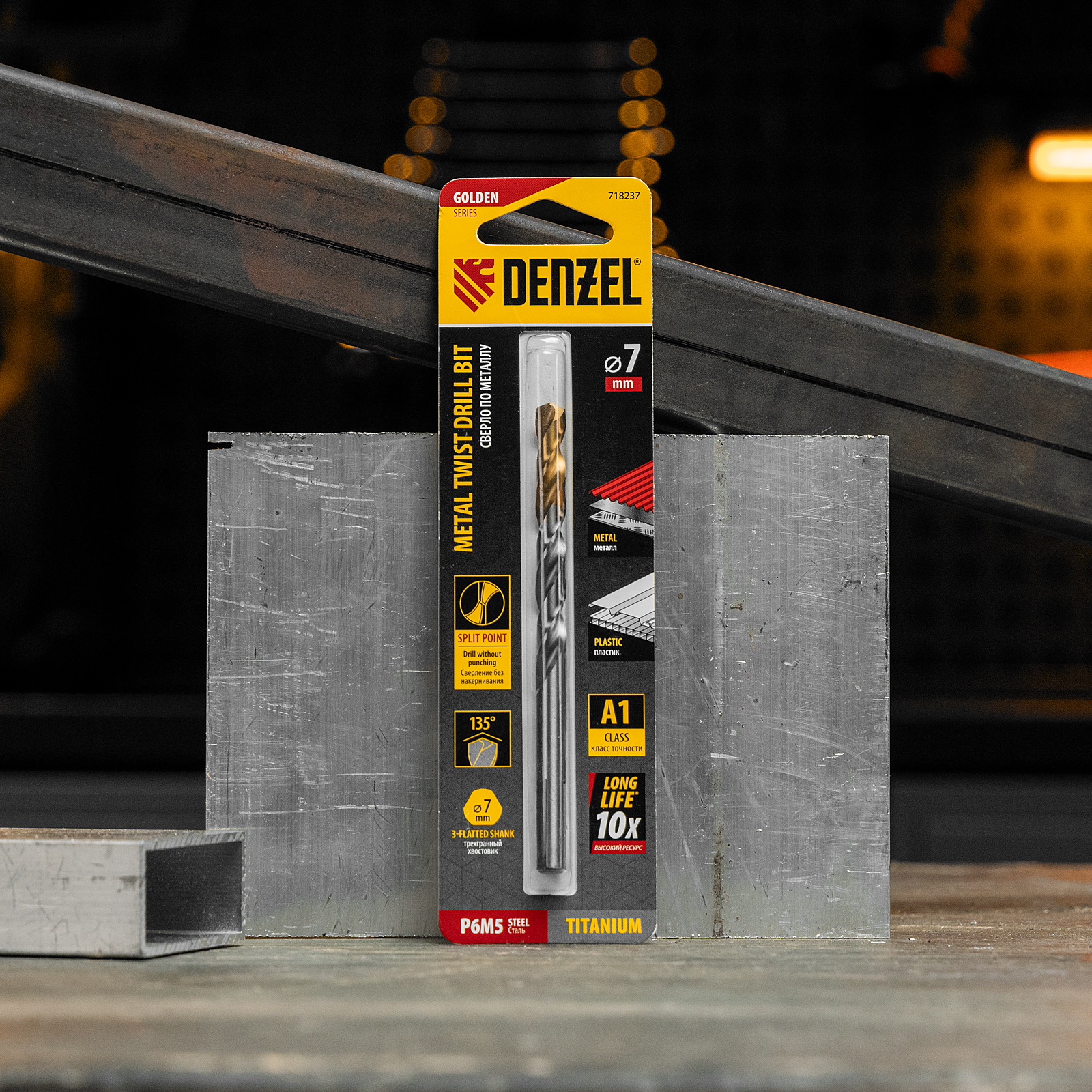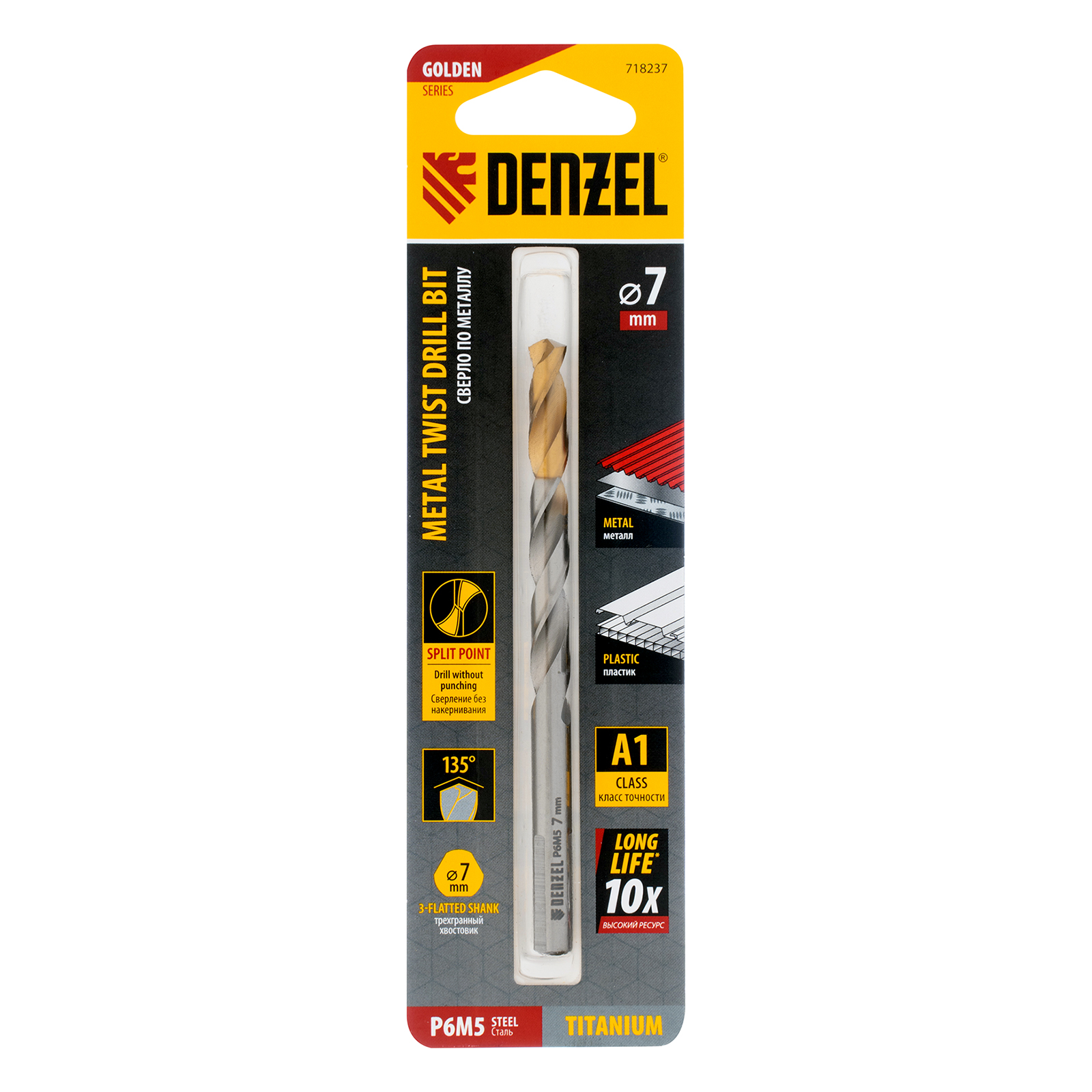 Спиральное сверло по металлу Denzel Golden Tip 718237 из стали P6M5, размером 7 х 109 мм, предназначено для получения отверстий в легированных и цветных металлах — меди, алюминии, мягкой бронзе, титане, латуни. Оснастка позволяет эффективно справляться с поставленными задачами благодаря оптимальному углу заточки 135°. Класс точности A гарантирует высокое качество полученных отверстий. Сверло используется для проведения монтажно-сборочных работ.